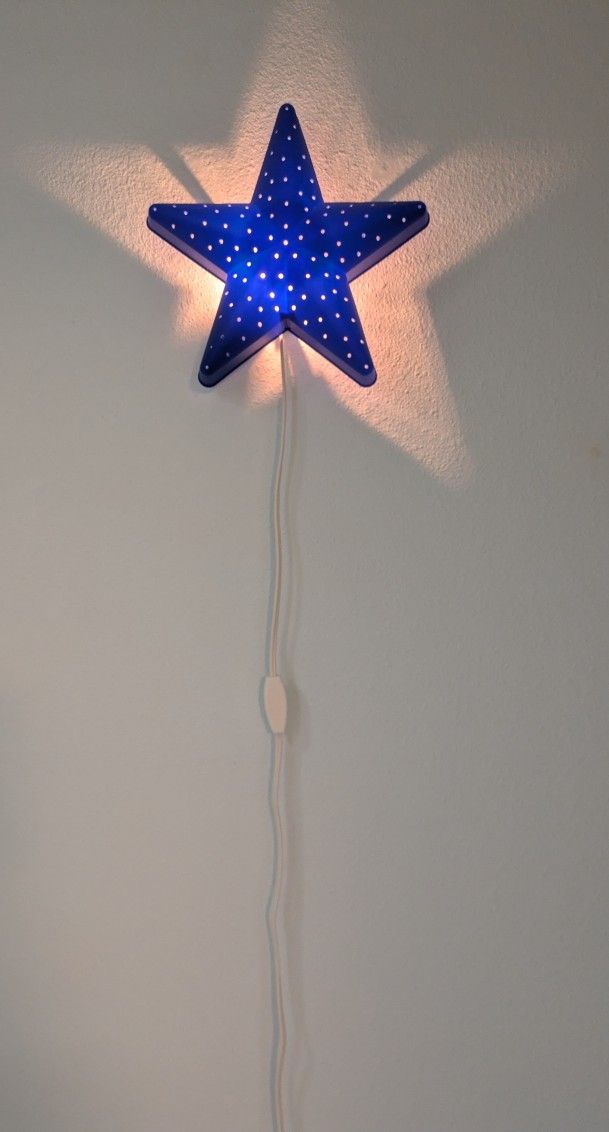 Two IKEA Smila Wall Lamps - Stjärna Blue Star and Mane Crescent Yellow Moon