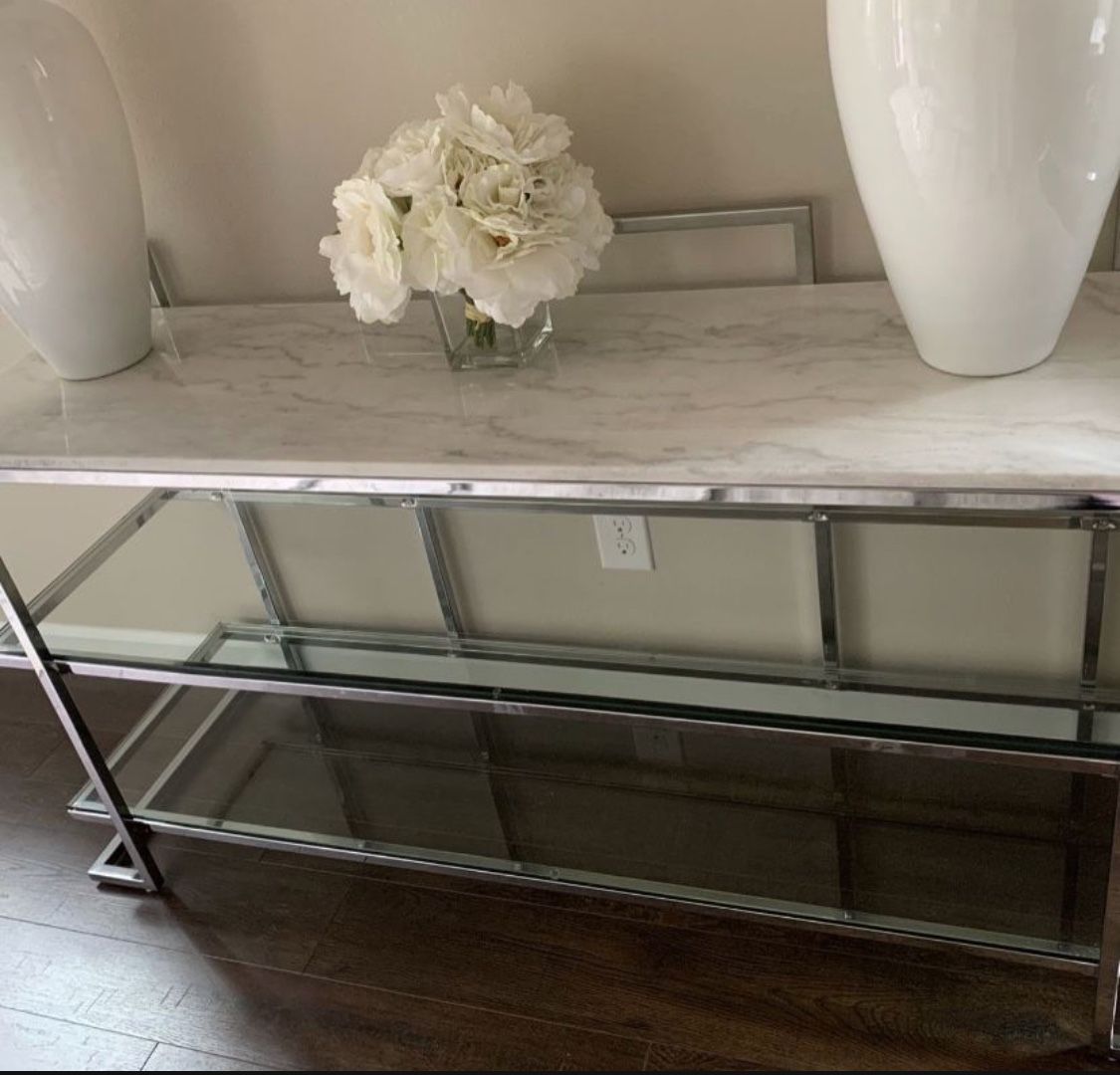 Glass, Marble And Chrome Console Table