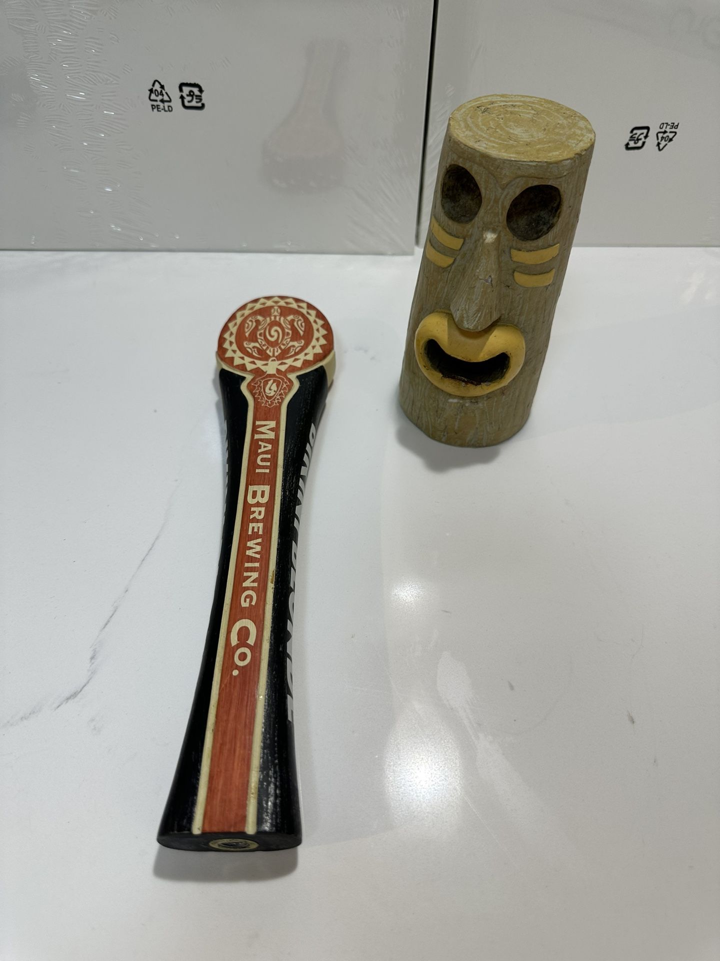 Maui Brewing Co. Big Swell wooden tap handle. Bikini Blonde It measures approximately 10 1/2 inches tall. It features a design associated with the "Big Swell IPA" beer. The tap handle is designed to fit any standard tap. It is a collectible item for beer enthusiasts. Tiki bottle opener