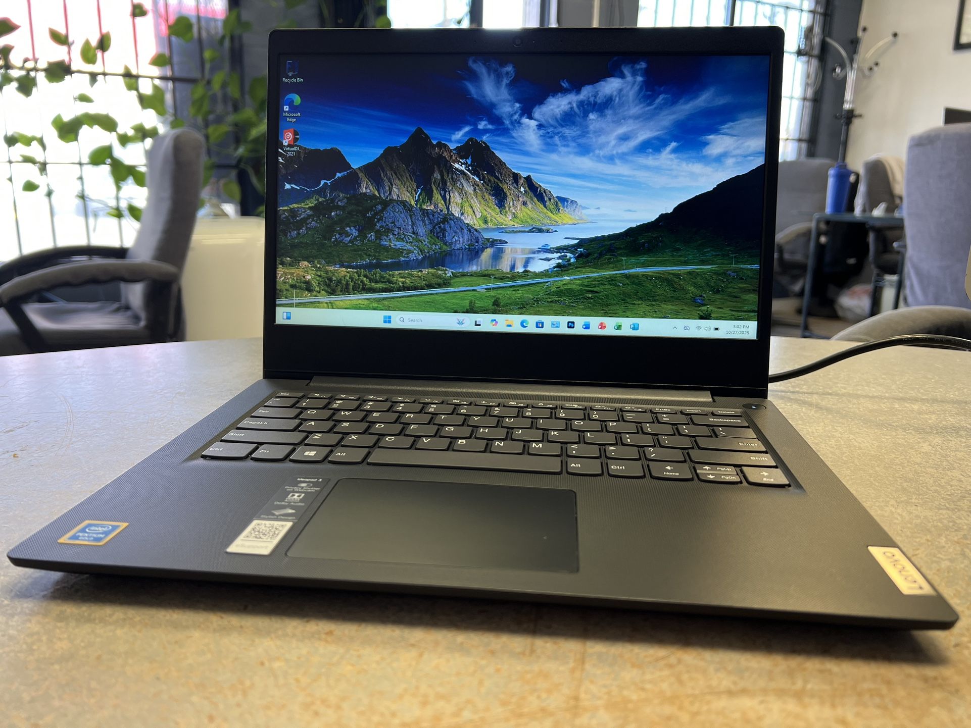 Like new conditions running fast and smooth Feel free to test it before you buy Screen size: 14” Processor: Intel Duo 4 Threads DDR4 8GB Ram 128GB SSD windows 11 latest version Additional software: Microsoft Office, Virtual DJ Pro, Photoshop. Perfect for school, office or every day use Comes with charger Price firm not negotiable Thanks for watching Hablo español