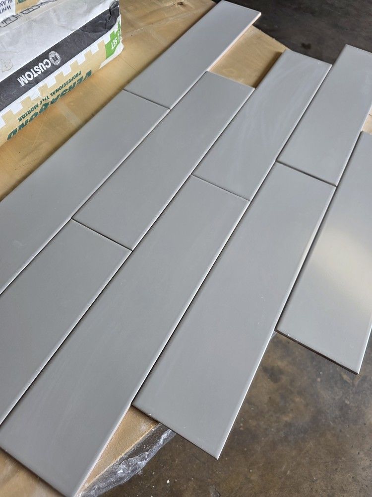 Over 1500 square feet available 4-in by 16 inch gray wall tile. 15 ft per box $10 each box