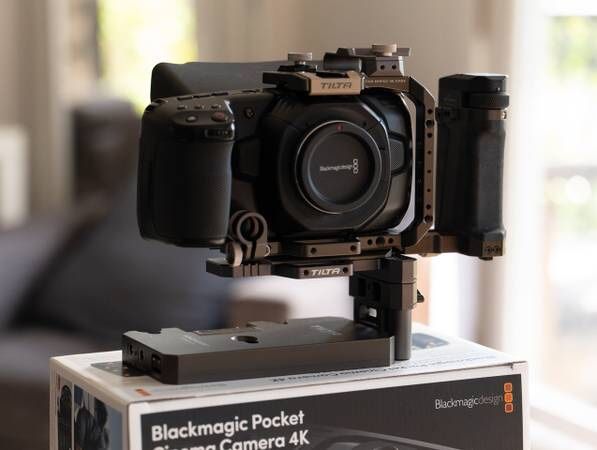 I am selling my Blackmagic Pocket Cinema Camera 4K (BMPCC 4K). I bought it brand new when the BMPCC 4k first came out. I'm the first and only owner of it. It has been well cared for and in flawless condition. Clean sensor, no scratches or damage. This is bundled with a handful of batteries, chargers, the tilta cage, gold mount battery plate, side grip handle, monitor hood, Samsung SSD holder, and all comes with the original port cap and original box. Great compact cinema setup - perfect for indie filmmakers, content creators, or anyone looking to upgrade to pro-level video quality on a budget. Price is firm Meet up point is at the lobby of the Cerritos Sheriff’s station - 18135 Bloomfield Ave, Cerritos, CA 90703. No trades Cash/Venmo/Zelle is fine Thanks for looking!