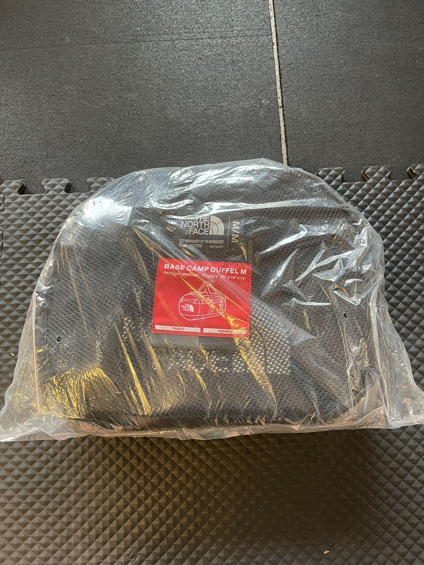 Rugged construction with water-resistant Base Camp material, extra bartacks and double stitching Removable, adjustable, alpine-cut shoulder straps for an ergonomic fit with minimal twisting 2 padded side handles serve both as duffel carry handles and as haul handles D-zipper opening with a weather-resistant flap Main compartment has a secure-zip mesh pocket and an end-cap mesh sleeve pocket for more organization 4 compression straps Water-resistant ID window on top Mesh-bag packaging helps keep the duffel clean Duffle bag was purchased from REI, still in plastic with tags!