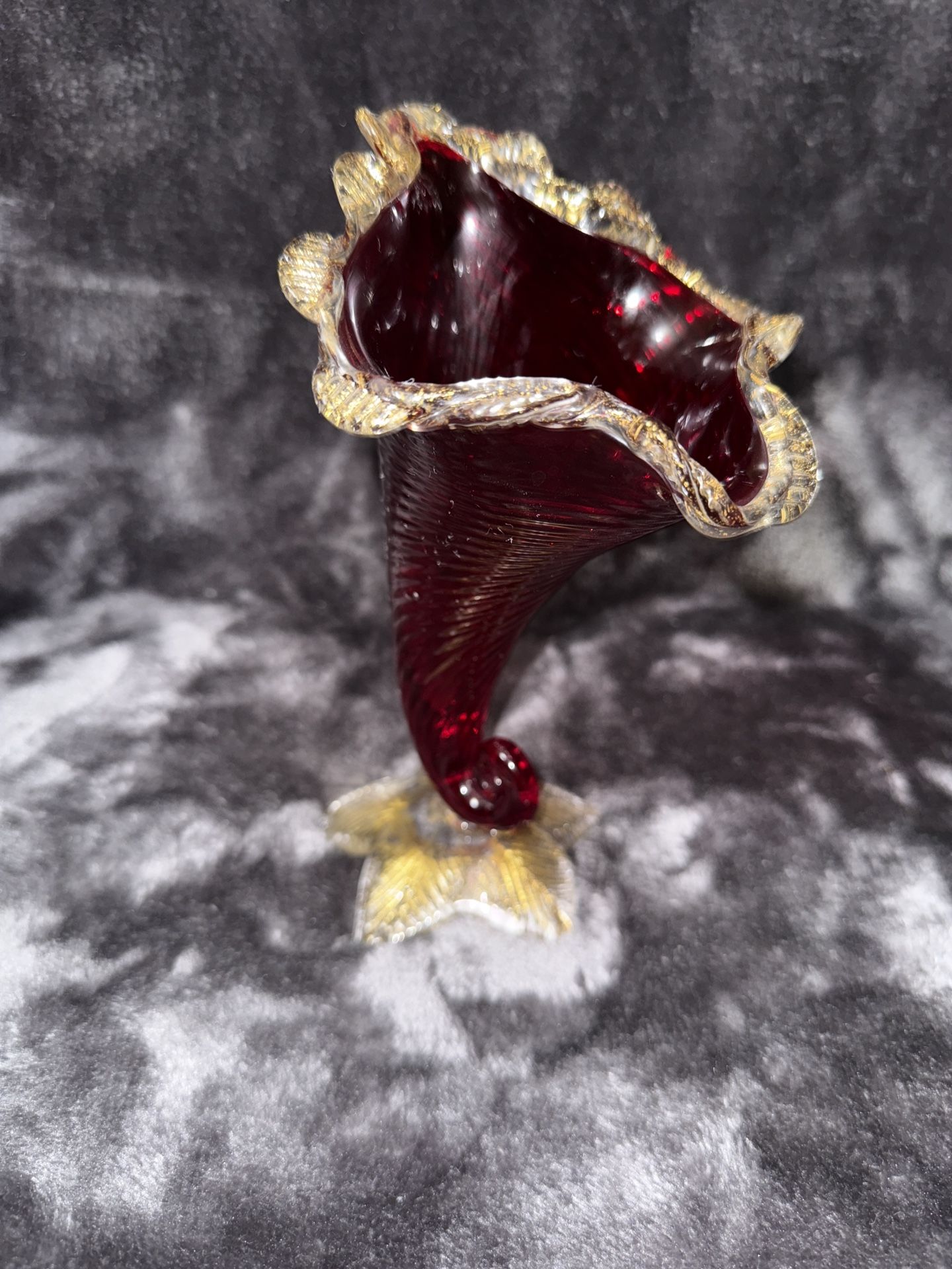 Cornucopia Base w/gold trim and stand-$75 VINTAGE RED VASE W/LID AVON-$75