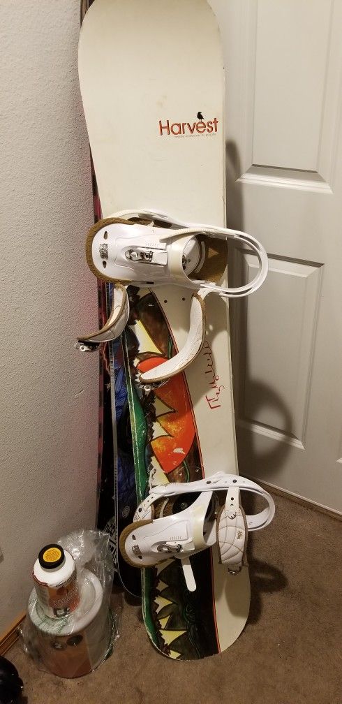 Nice deck but old. Burton bindings for extra 25$