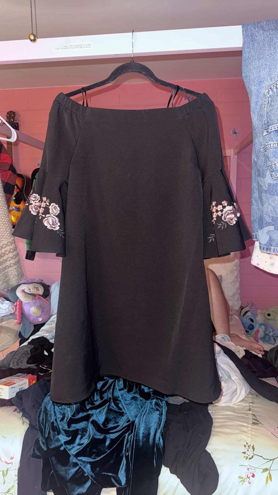 Jennifer Lopez Small Black Embroidered Off Shoulder floral shift Mini dress $30 Pick up in Loma Linda