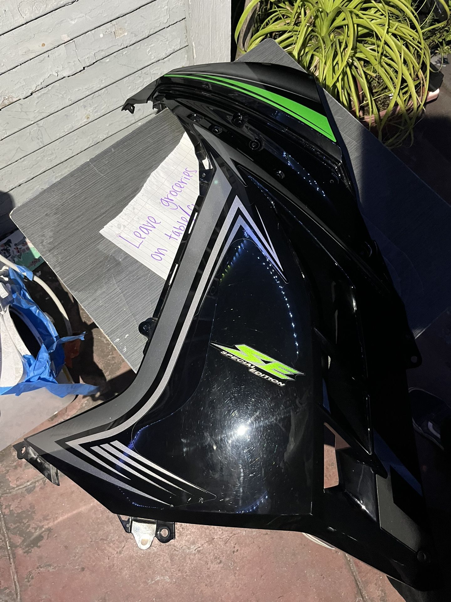You can buy as a whole or individually hmu Parts are all OeM Slight scufs , one flaring is broken but was repaired Gloss black color with SE decals Plastics and flarings