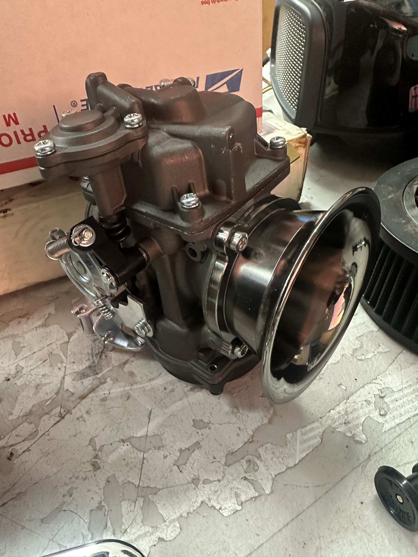 From a local auction of motorcycle parts I won is this new carburetor. I do not see a manufacturer or brand but it’s definitely a new CV 40 model. Gold Canyon for pick up.