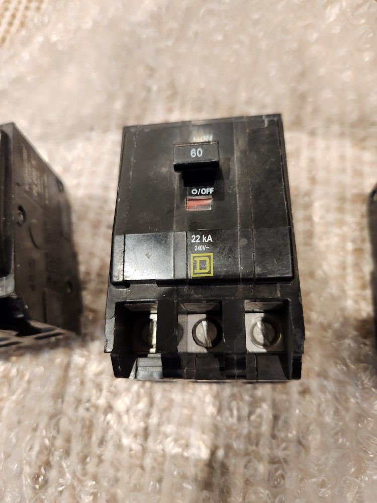 Square D breaker 60 amp 3 pole 250v qobvh 22k rated 60 amp bolt on breaker like new.