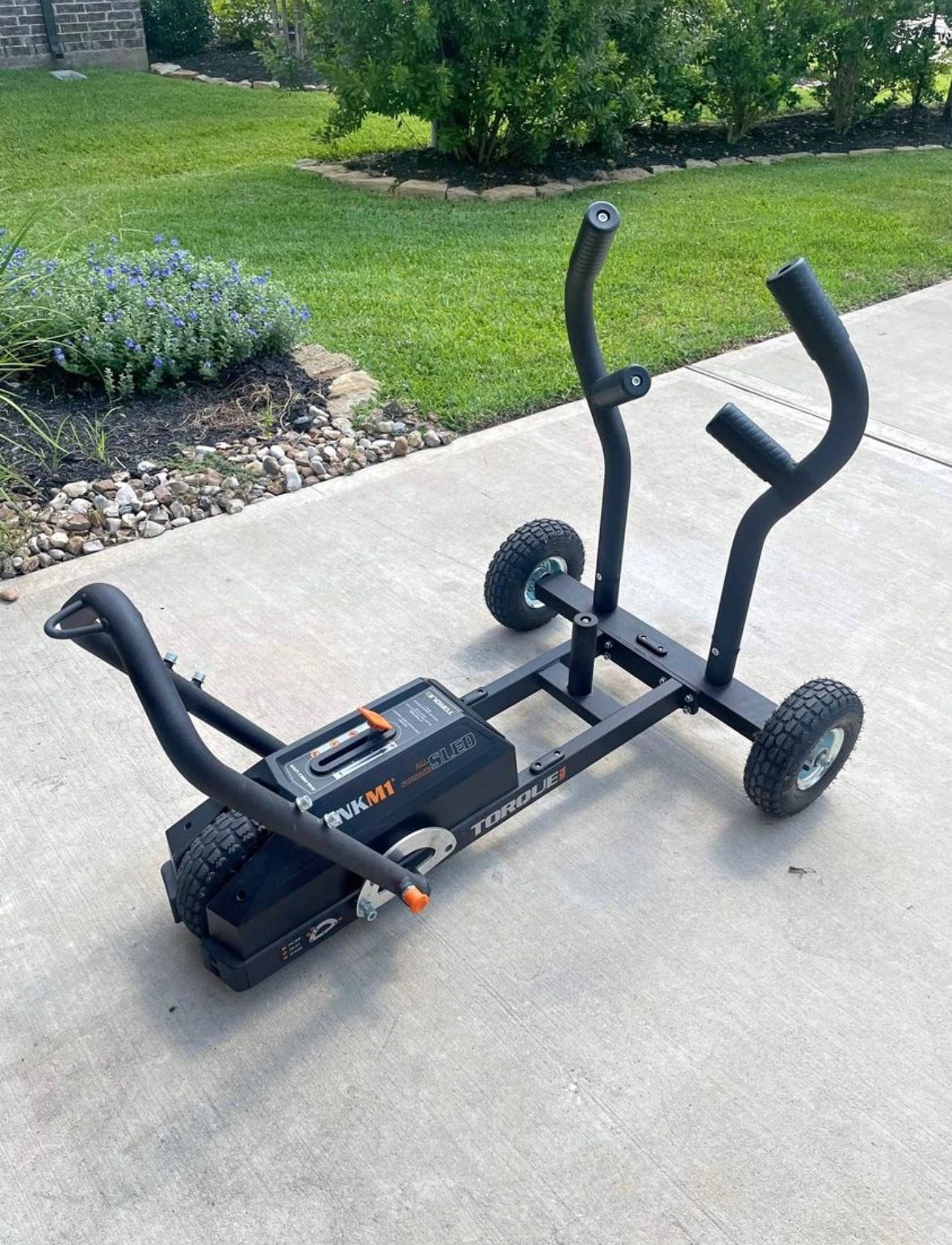 Excellent Condition! Tank M1 Push Sled. 3 adjustable resistance levels (chain resistance). Capability to load 90lbs of additional plate weight. Removable handle. Dimensions: 45.1"x31.9" x37.5"