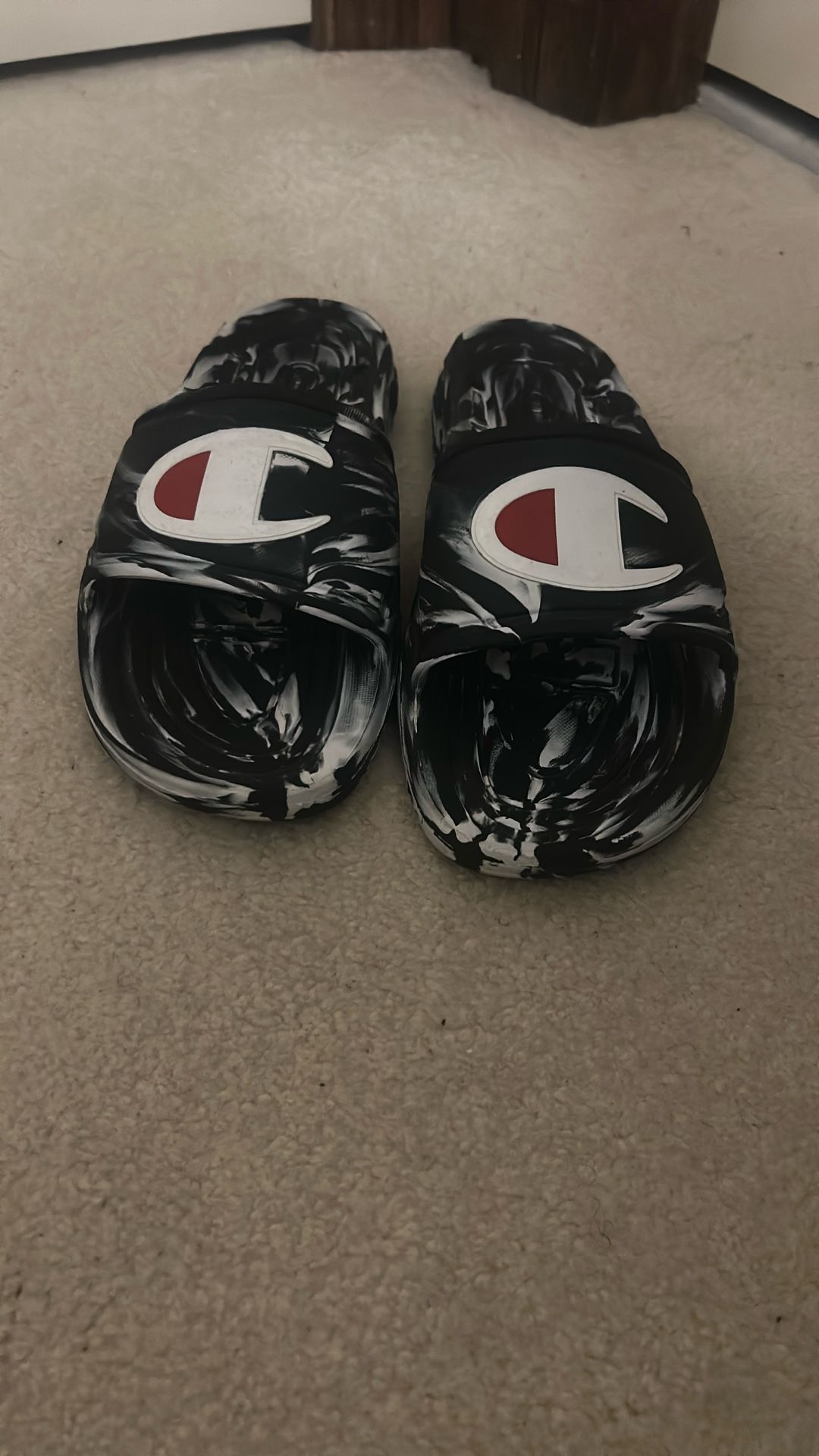 Selling a pre-owned pair of casual and stylish Champion IPO Slide Sandals. These slides are perfect for casual wear, the gym locker room, or the pool.