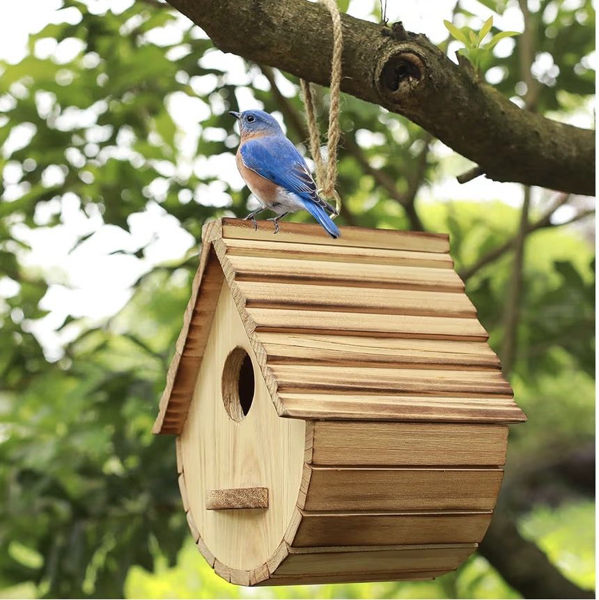 STARSWR Bird House for Outside,Bird Houses Outdoor, Natural Wooden Bird House Clearance Bluebird Finch Cardinals Hanging Birdhouse for Garden Viewing