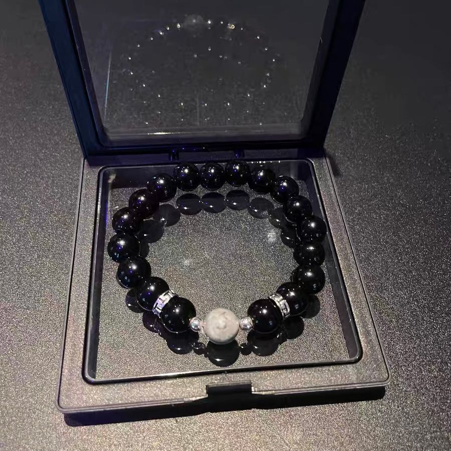 Simple obsidian bracelet for men and women, the same new Chinese beaded bracelet, niche, high-end sense, colorless with accessories