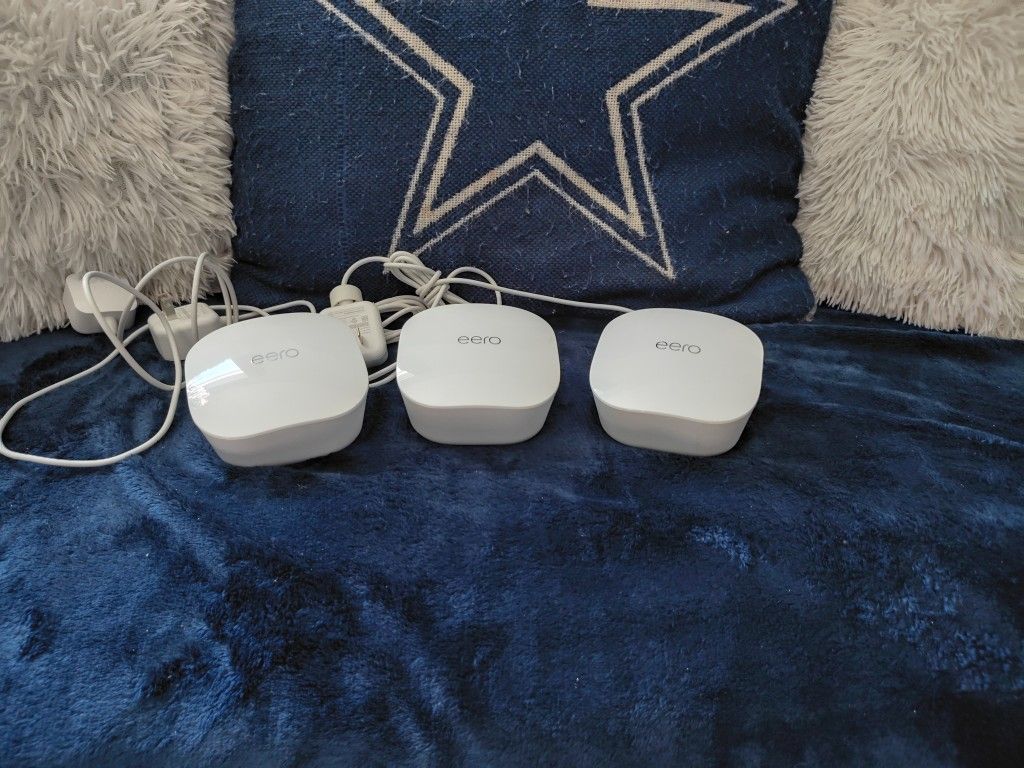 3 pack mesh WiFi6 network system Product fully reset and ready to start fresh with install.