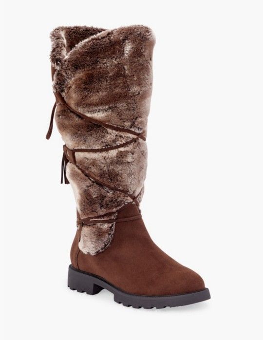 Brand NEW Brown size 9 Faux fur Viking Style Boots Features JF Form Foam - Twice the thickness of a standard foam insole, with optimal rebound so the sole never flattens and you always feel supported. Material: Faux Suede Heel Height: 1.25" Extra wide width has additional room across the footbed, ball of the foot and instep Extra Wide width + Extra Wide Calf size is available in E fit Measurements will vary slightly Imported Fit: True to Size