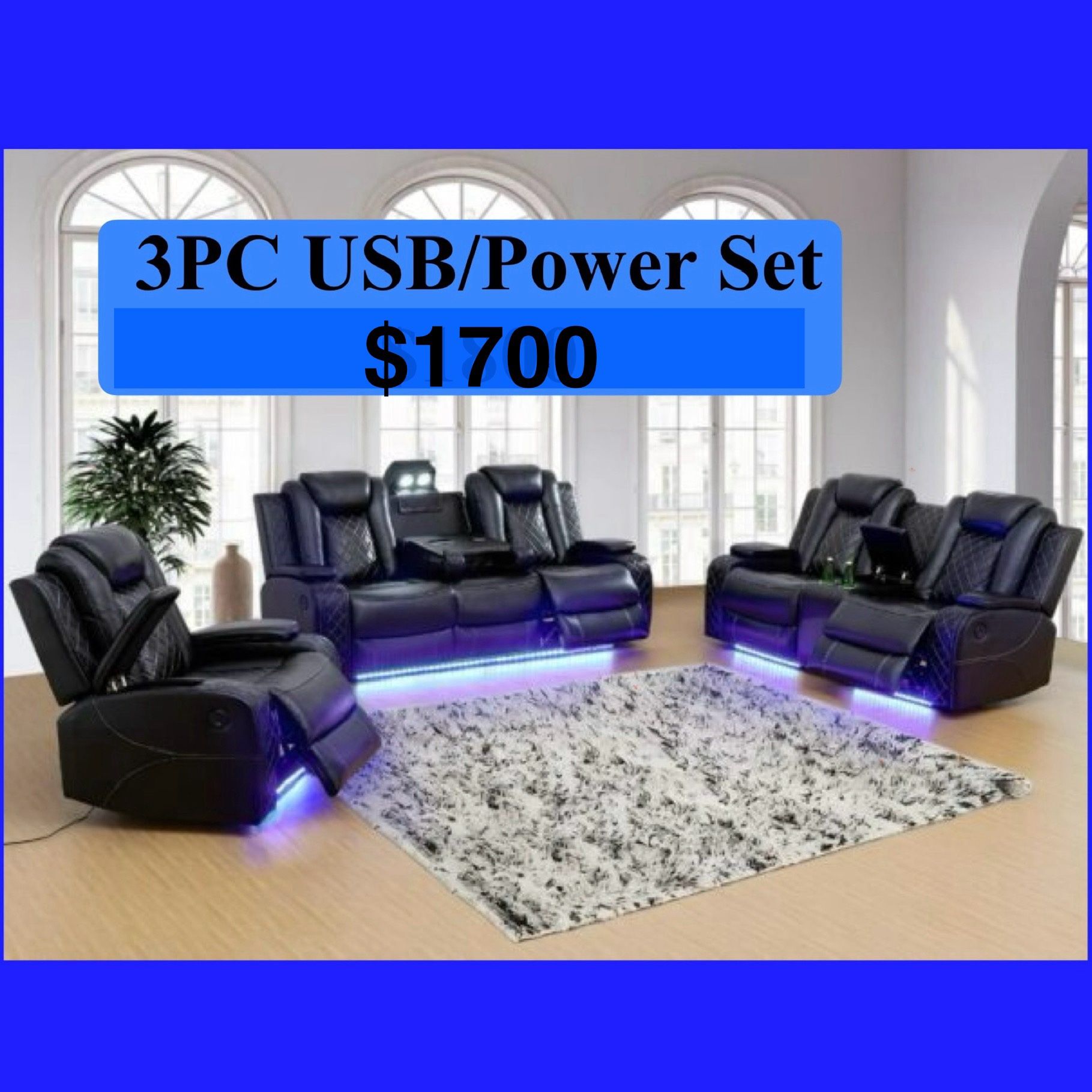 💥FREE DELIVERY💥Brand New POWER, LED, USB 3PC Reclining Sofa Loveseat Chair Set