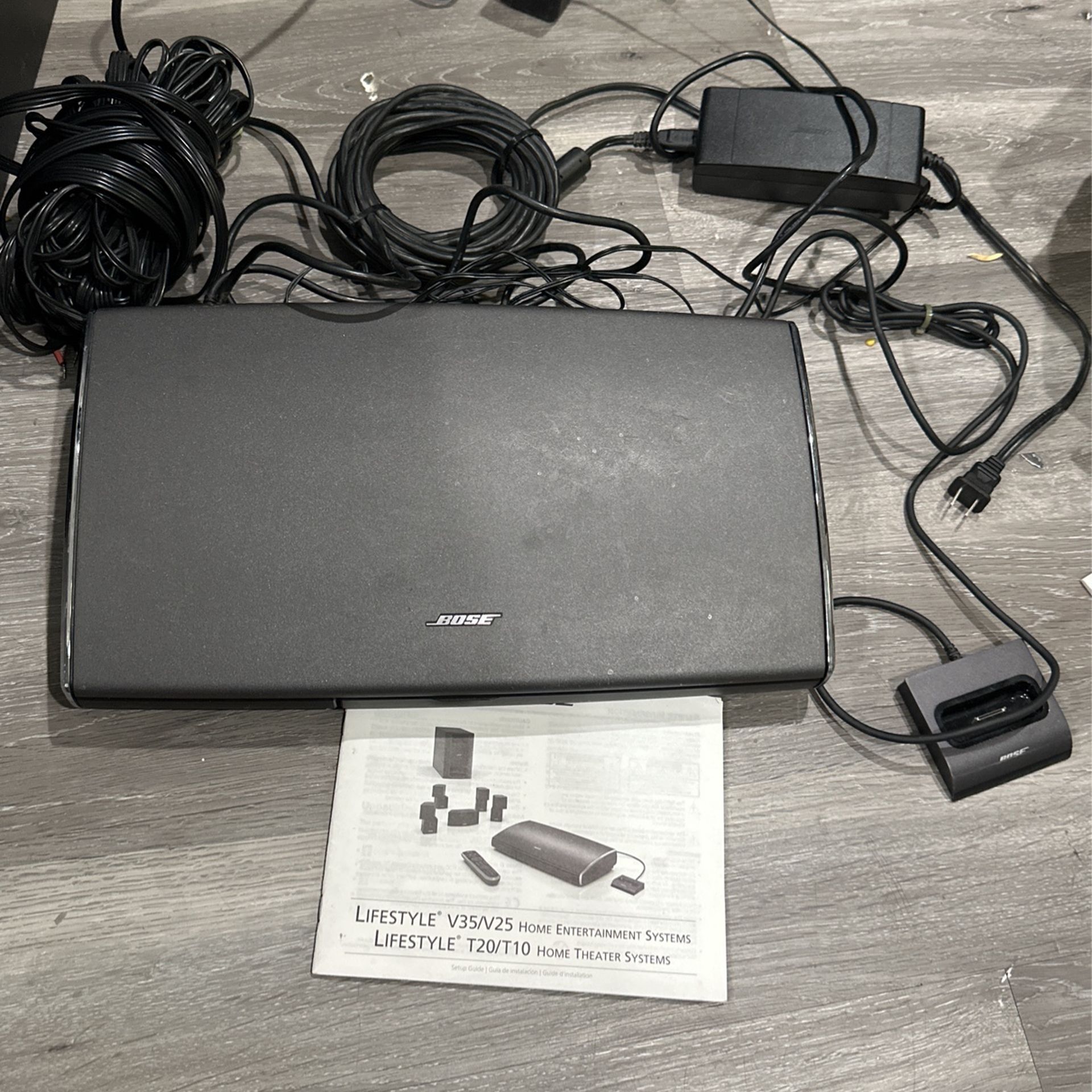 Lifestyle t20/t10 home theatre system two additional speakers not photographed same size but on bar stands Bose