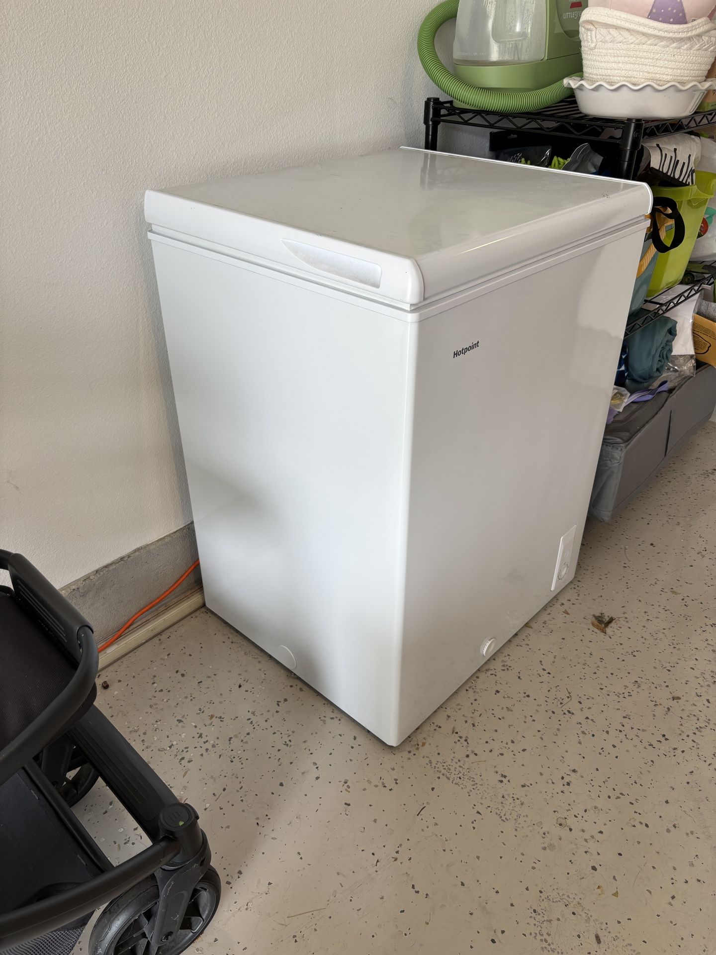 Brand new with very minor use. Great for storing frozen items in garage and takes up a small footprint.