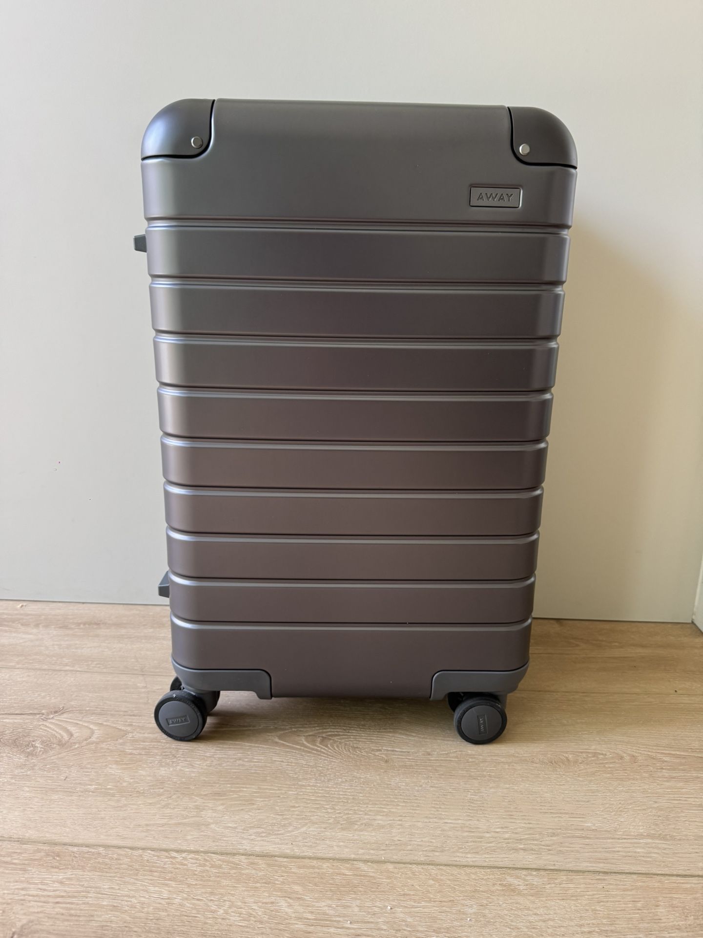Away Aluminum Bigger Carry On Color: Graphite Used only a few weekend trips. Small scratch and dent on the back at the bottom. Other than that almost perfect condition. Rare color release
