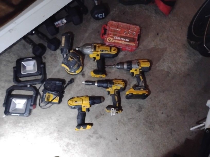 4 drills 1 battery 1 charger 1 sander ,2 huskey lights 1craftsman set 260$ total