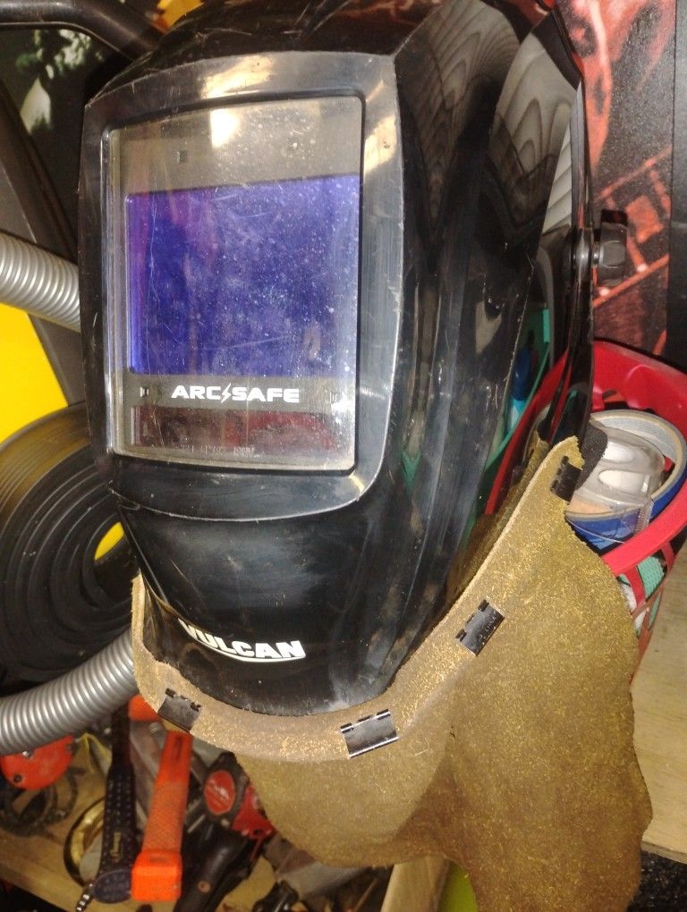 VULCAN 10.1 sq. in. ARCSAFE Auto-Darkening Welding Helmet. In good working condition. Batteries included. Small scuff marks and minor scratches from use. Perfect for any welder.