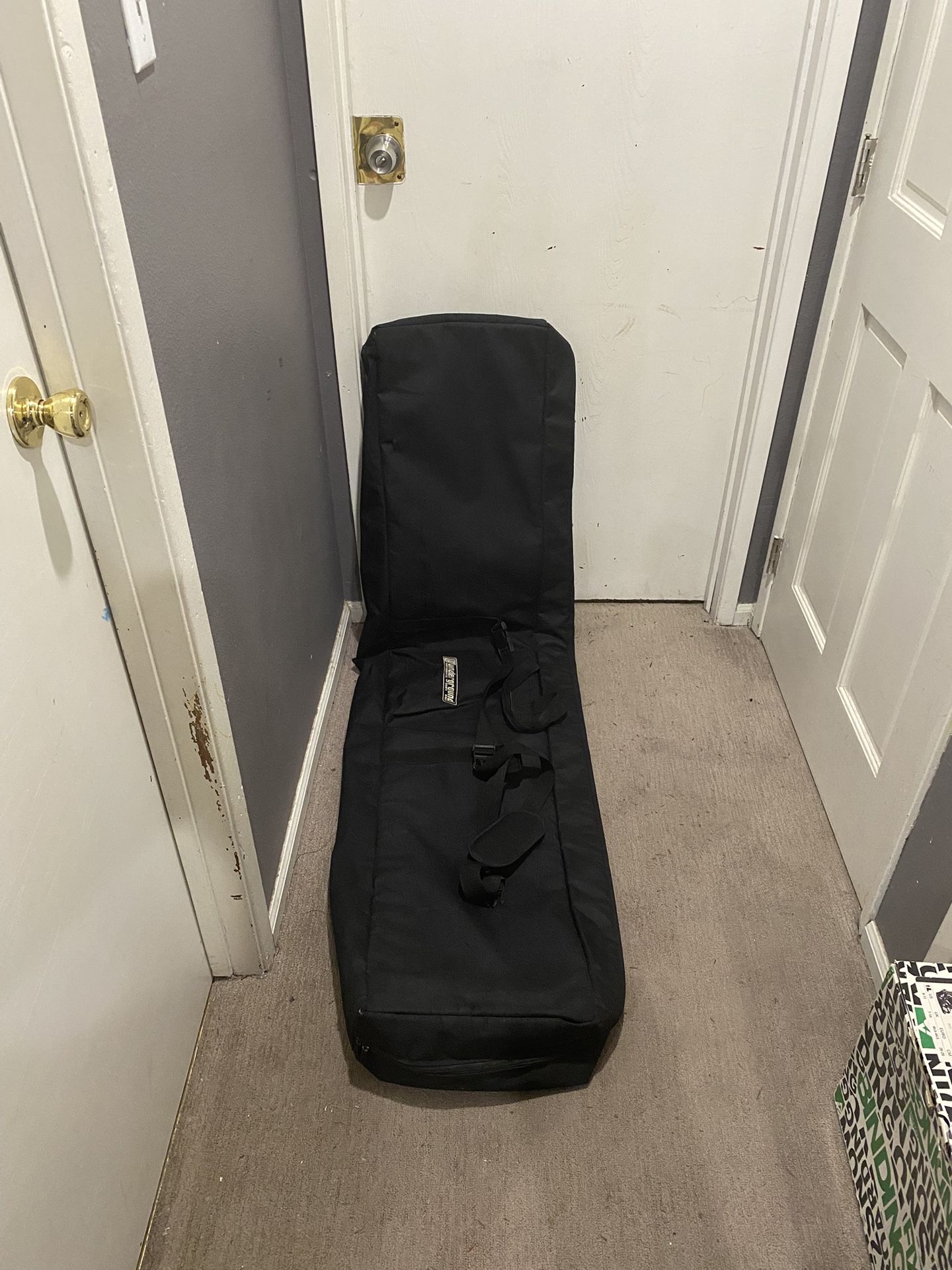 In good working condition. All zippers works. Straps and handles all works well. The length is about 67in. Giving for free with purchase of any snowboard.