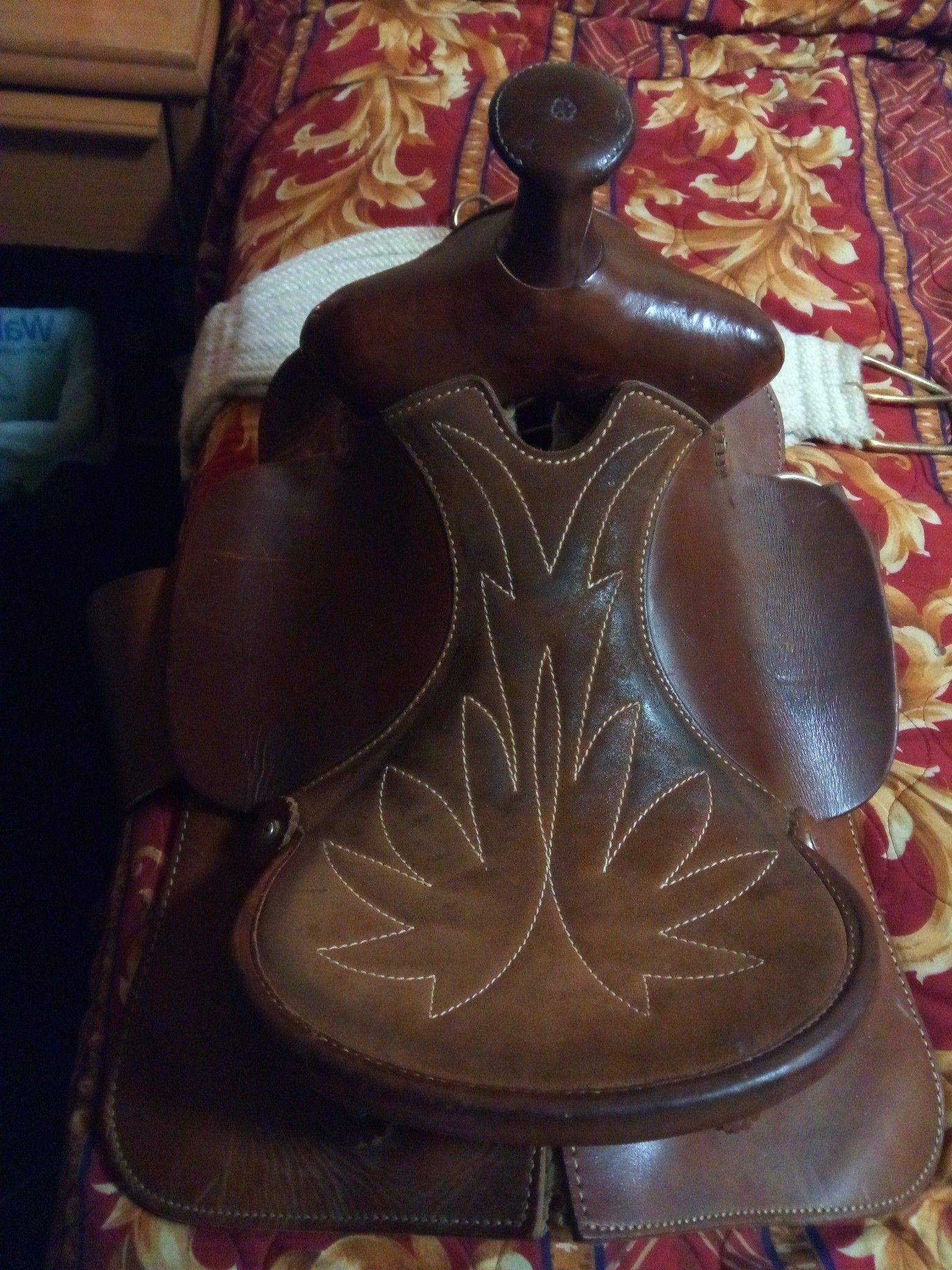 Nice leather Western saddle. Looks to be smaller than adult saddle. In exceptional shape. Missing the stirups. New 379.00 asking 150. This is in great shape like new