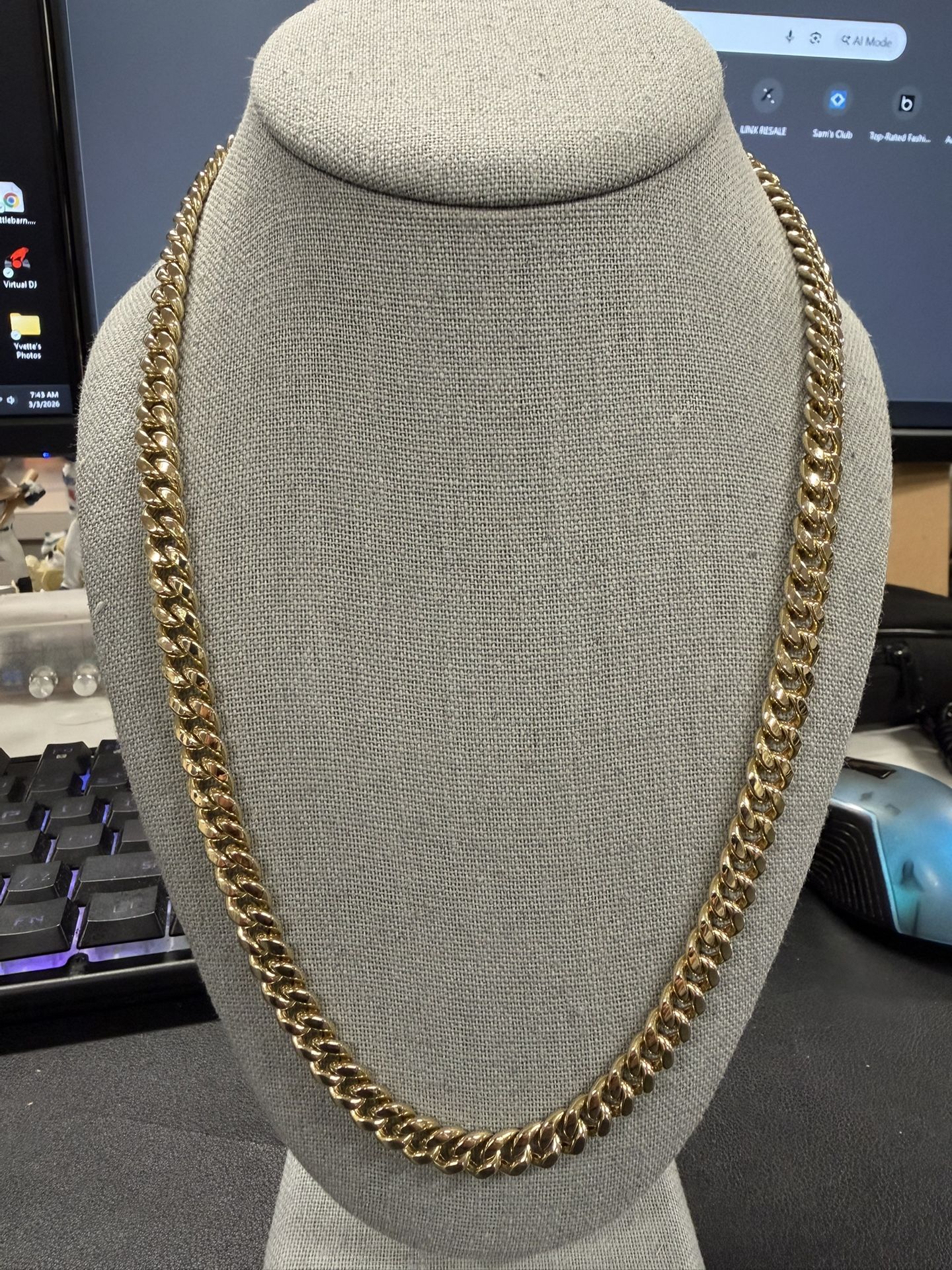 10k Gold 7.5mm Hollow Miami Cuban Chain Real 10k gold Weights 21.55g Light weight hollow links 22” long Purchased and authenticated from EBay not selling as scrap it’s a great condition chain. So don’t waste your time or mine with low ball offers Meetup at police station only $2700 O.B.O