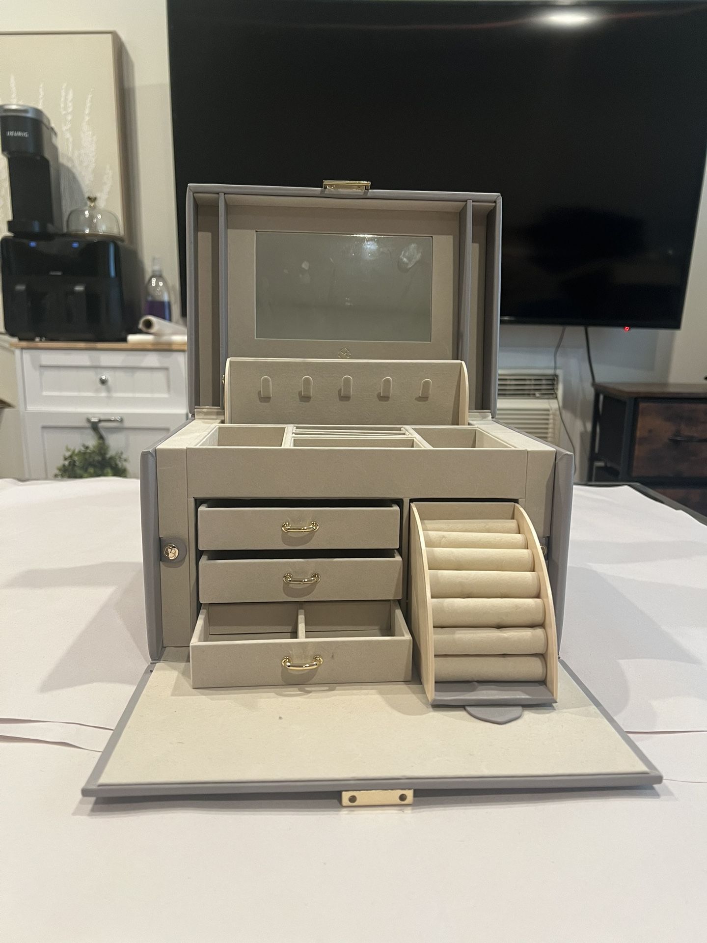 Elegant Jewelry Box with Mirror & Multiple Drawers — Like New!