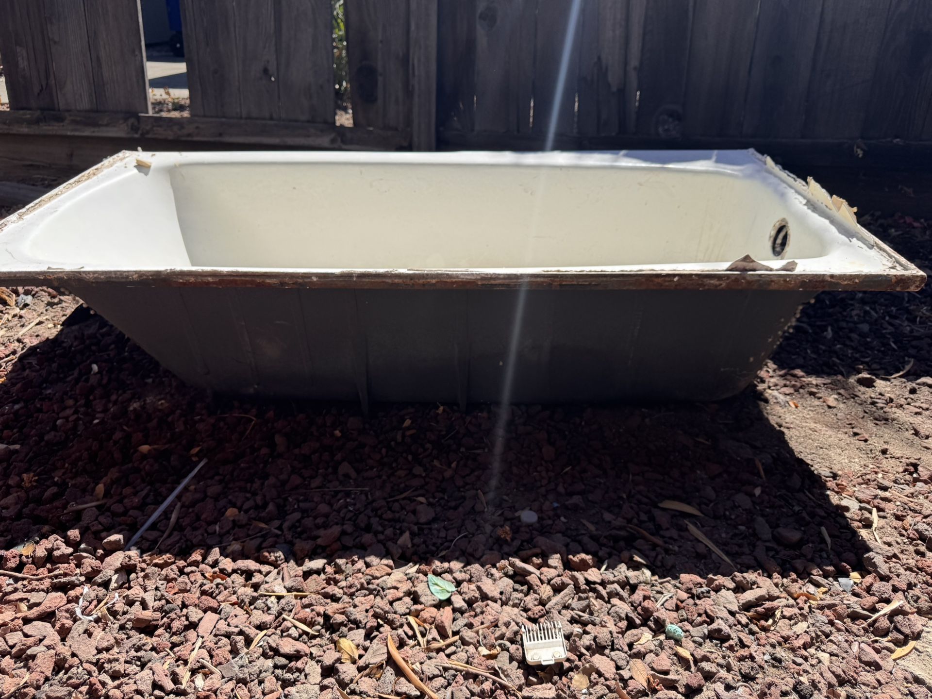 Heavy metal bathtub. Came out of construction.. it’s not fiber glass material. It’s solid metal. Will need 2-3 people to carry it. Make offer