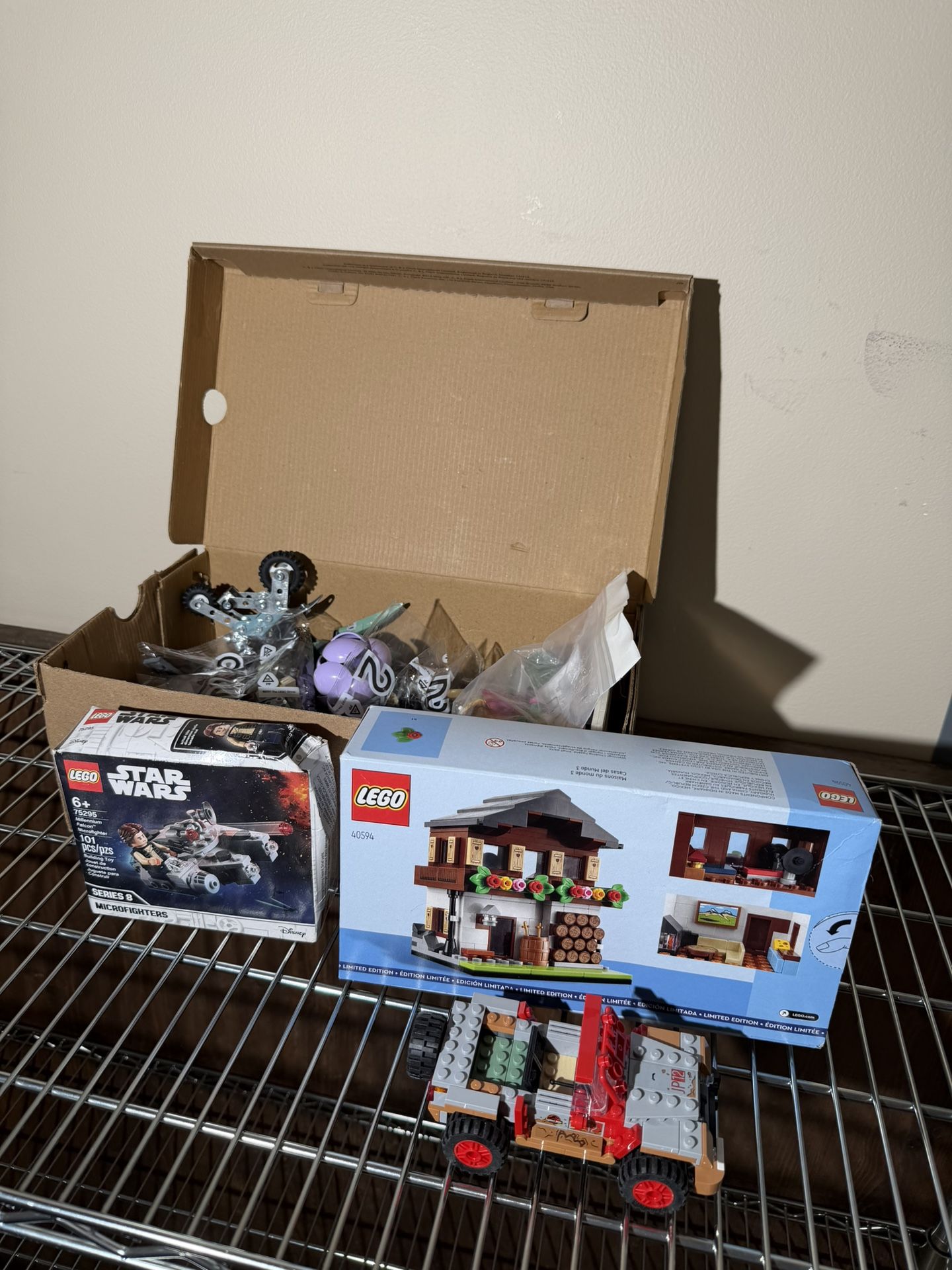 Mixed LEGO lot in very good condition. Includes: • LEGO Star Wars Microfighters (Series 8) – box included (opened) • LEGO 40594 Limited Edition Cabin House – box included • Large amount of original LEGO parts, mostly sorted in bags • Built LEGO vehicle (see photos) • Instruction booklet(s) included where shown Great lot for collectors, kids, or LEGO fans. Some sets may be partially built or mixed, please see photos for exact contents. Sold as a bundle only.