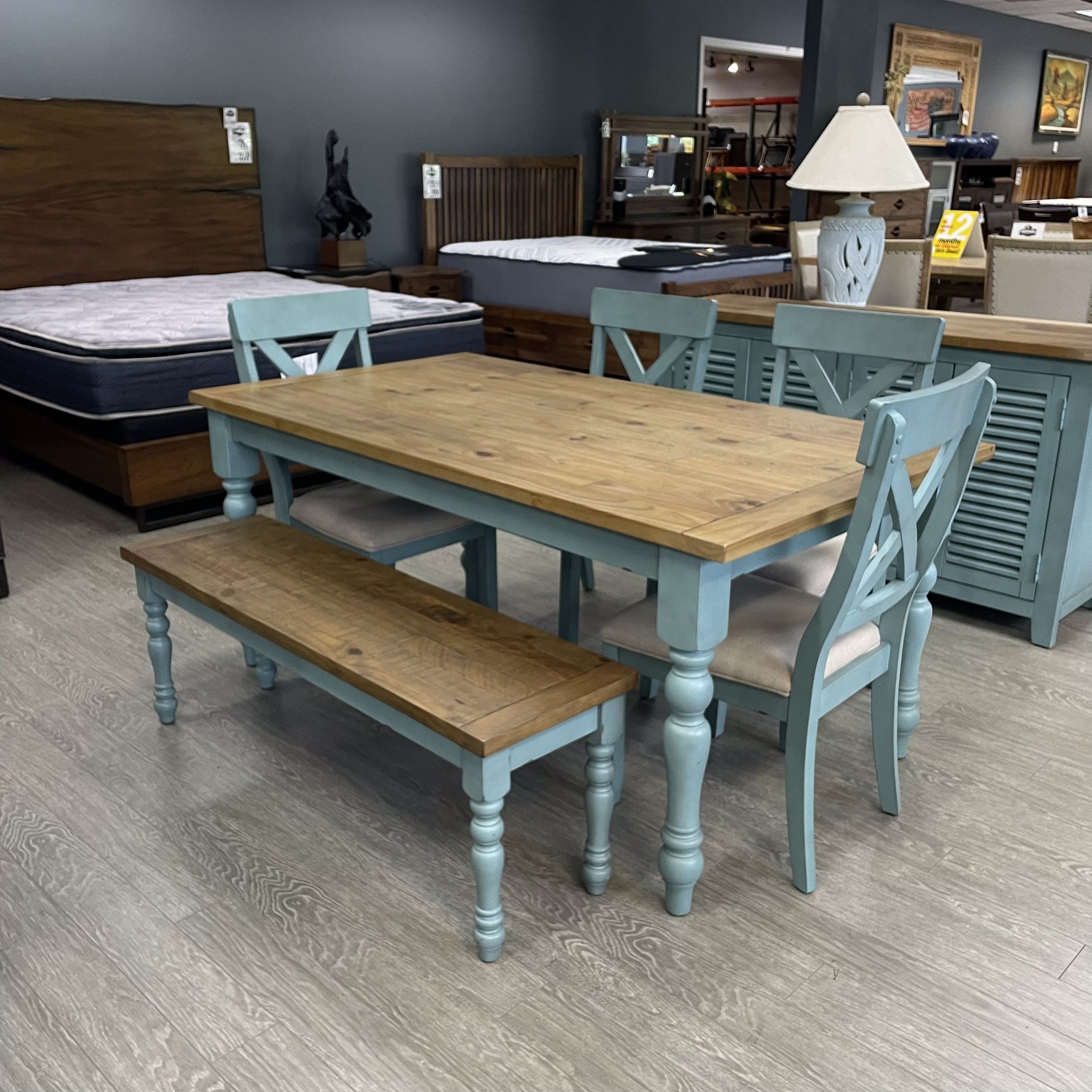 Set includes: 1 table, 4 chairs, and 1 bench Table Dimension (w,d,h) 68” x 38” x 30” America The Beautiful Dreamer 9700 NE 126th Ave Vancouver, WA 98682 Open everyday 10am to 6pm. Financing & layaway available! Same day pickup and delivery options are available. Prices available for LIMITED TIME - Prices are subject to change, so please call or message us to confirm the pricing!