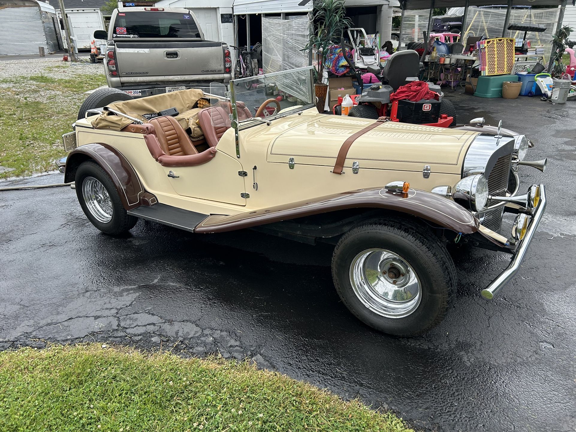 1926 Mercedes kit car auto 4 cylinder it has. A top with. It nice. Car. Runs. Great.