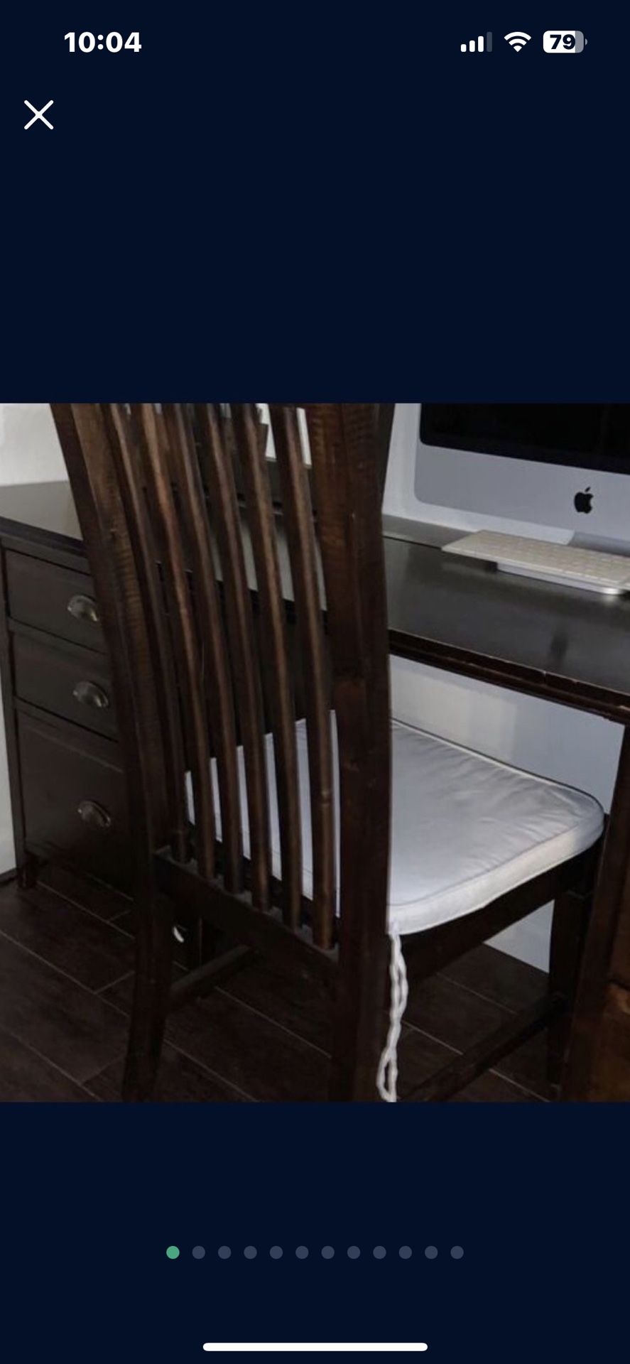 Dark stained solid wood chair By World Market Used at our desk but is a standard dining chair Tags pottery potato barn west elm pier one z gallerie gallery galleria crate and barrel anthropology magnolia shabby chic farmhouse decor