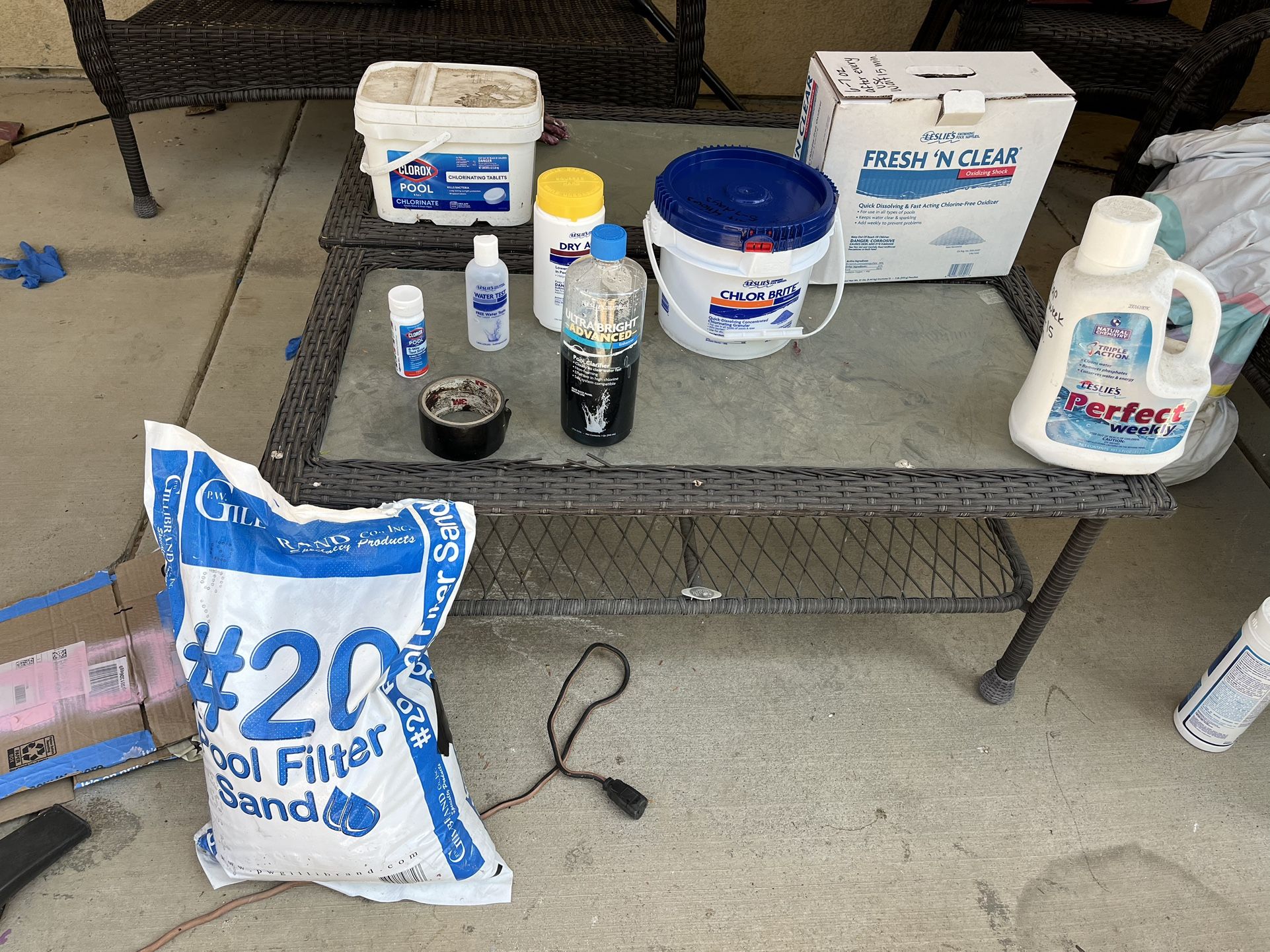 Have pool supplies for sale that I don’t need anymore, $50 for the chemicals $25 for the tools