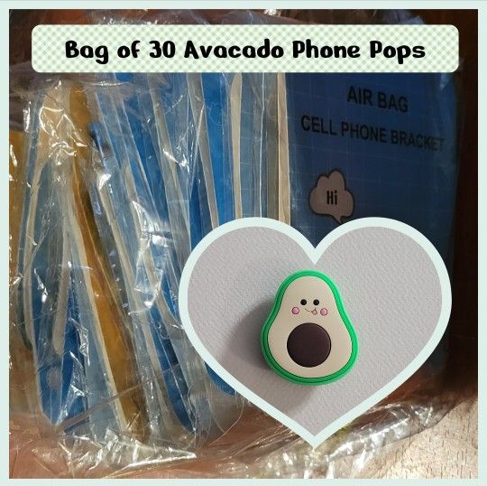 30 New Avacado Phone Pops. Also great for sticking to walls to hang items like medals, lanyards, etc.