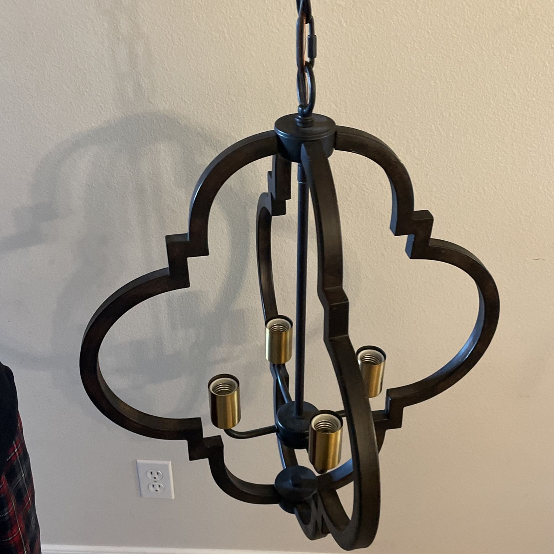 Hanging chandelier. Approximately 20” wide by 24” tall. Works perfect. No scratches or marks. Takes four large base lightbulbs. $75obo