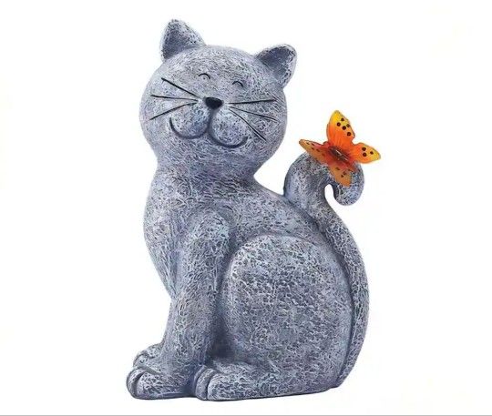 Solar Cat Outdoor Statues with Butterfly for Garden, Yard and Lawn