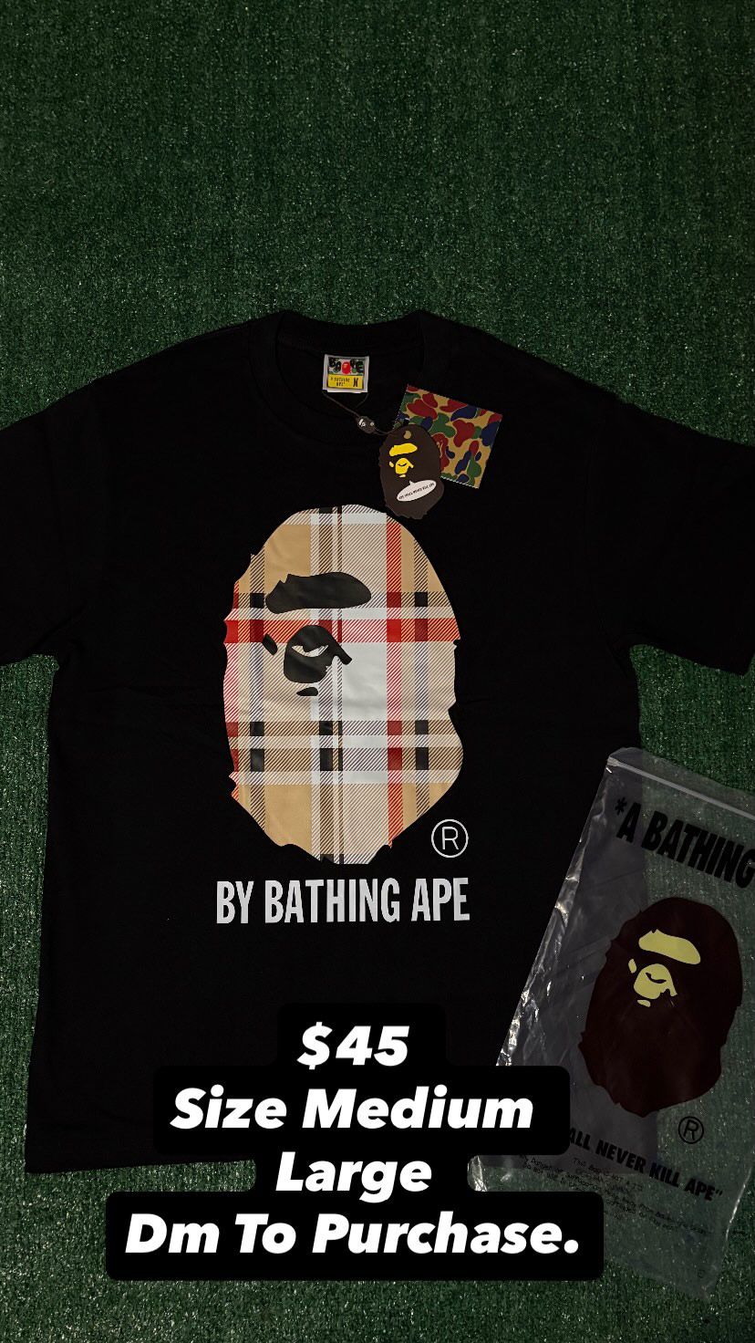 BAPE × Burberry black tee Shirt Size medium & Large (brand new) & Packaging Same days/24 Hour shipping X Trusted seller white graphic, streetwear, oversized fit, trendy, casual, brand new, embroidered, minimalistic, artists
