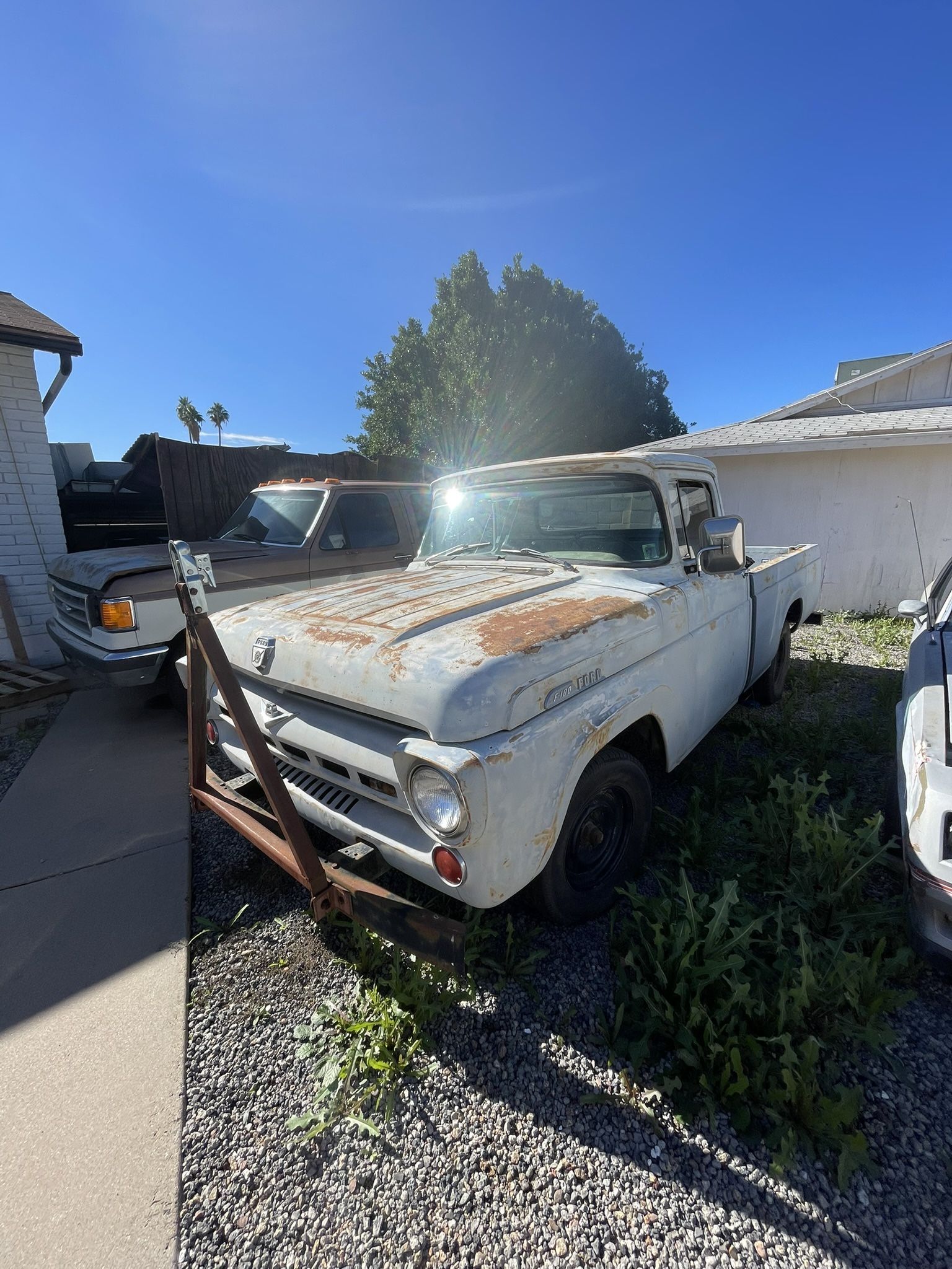 No trades! 1957 Ford F100 8ft long bed Straight body good condition ready for restoration Rebuilt 289 Rebuilt 3 speed manual New suspension it’s been sitting for 20 years I haven’t tried to start it Needs to be restored Clean AZ title in hand