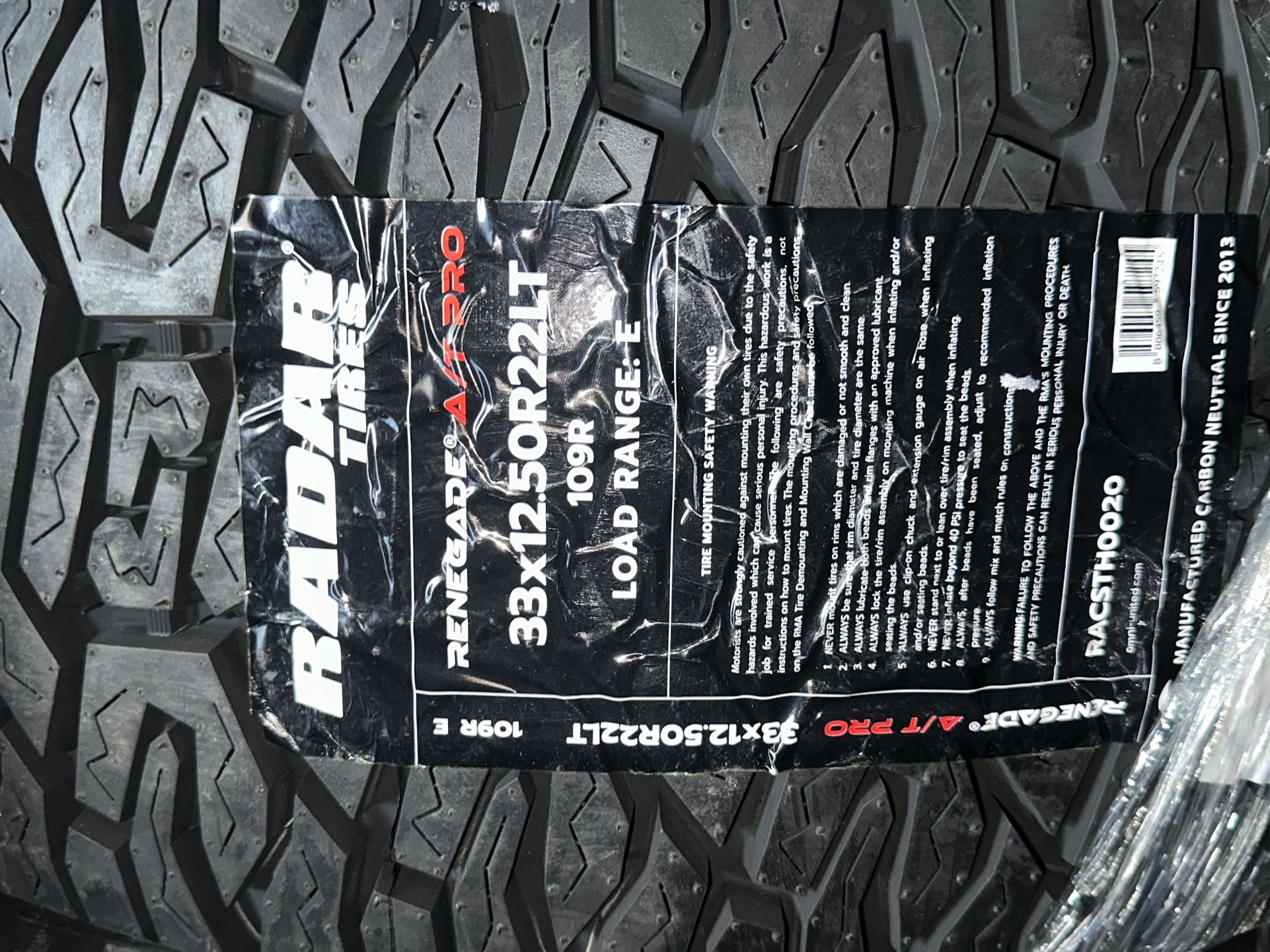 Vendo llantas Radar nuevas 33 12.50 22 pulgadas lts en 1100dollares precio firme Brand new renegade tires 33 12.50 22 1100 dollars firm