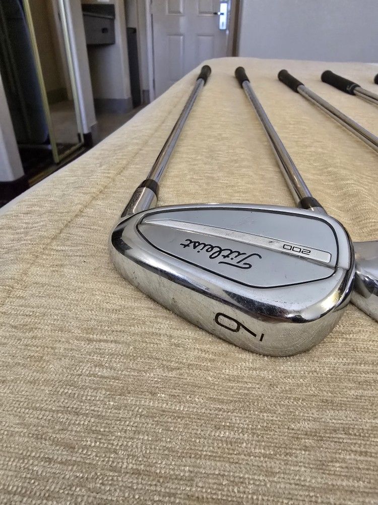 The Titleist T200 Iron Set for 2023 is a high-quality set of golf clubs designed for men who prefer a right-handed game. With a sleek silver color and a stiff steel shaft, these clubs offer precision and control on the course. This set includes 8 clubs with a standard lie angle, making it suitable for players looking for a reliable and well-balanced iron set to improve their game. The T200 model is known for its performance and craftsmanship, making it a top choice for golfers seeking excellence in their equipment.