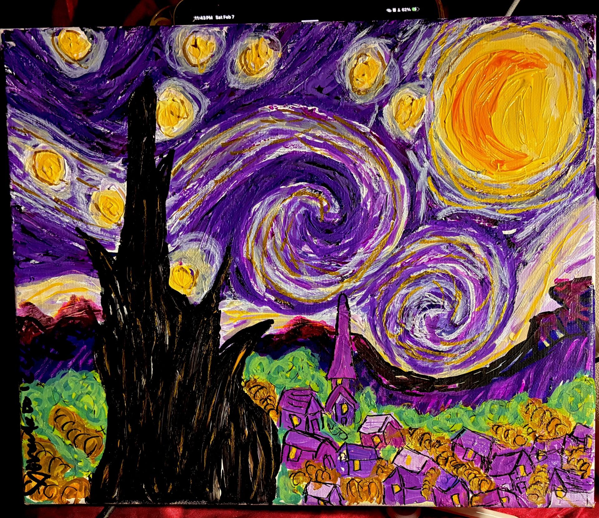 Painted by me, a purple starry night on 11 x 14 stretch canvas