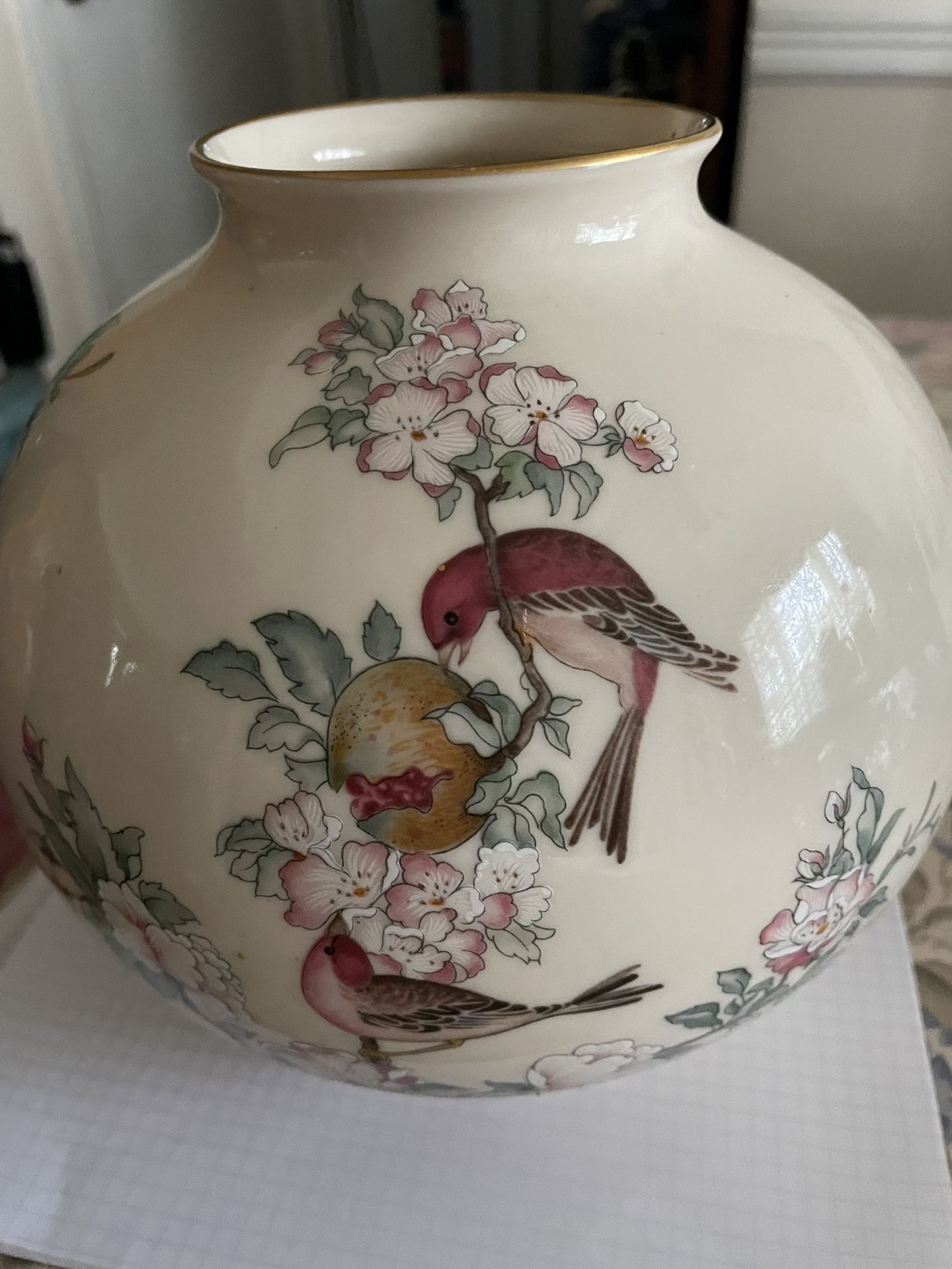 Lenox Vintage Cream Globe Vase With Birds And Flowers