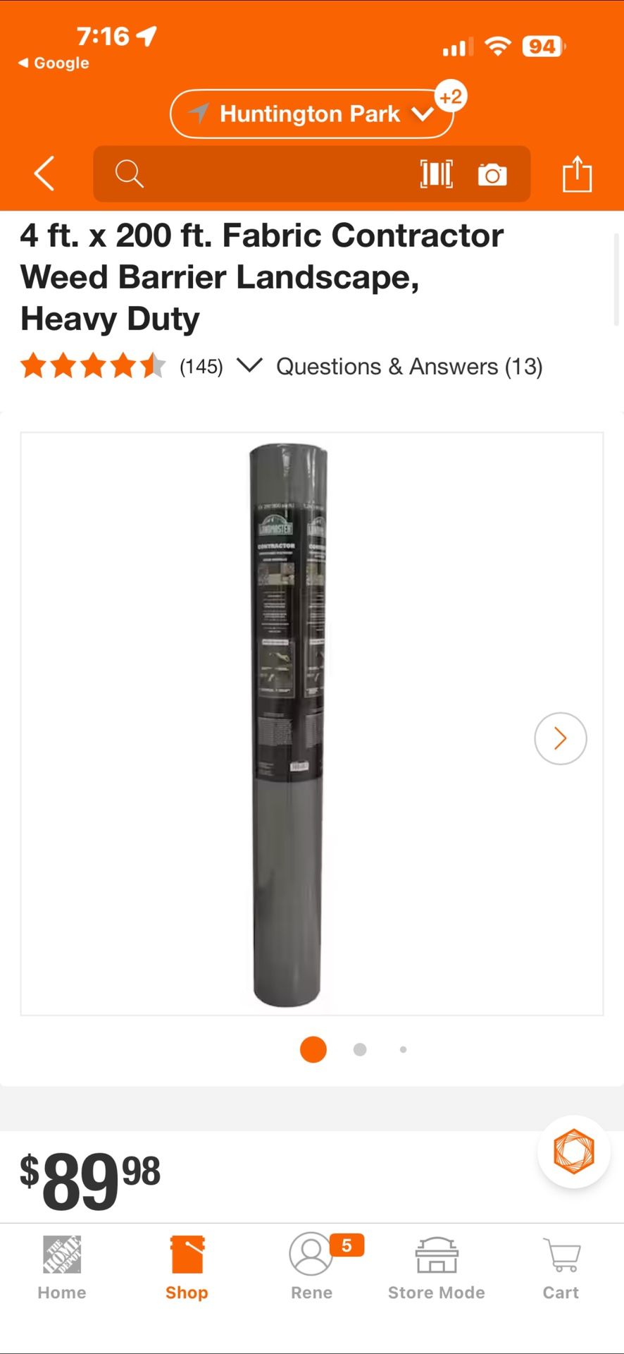 Landmaster 4 ft. x 200 ft. Fabric Contractor Weed Barrier Landscape, Heavy Duty Price x each Price firm