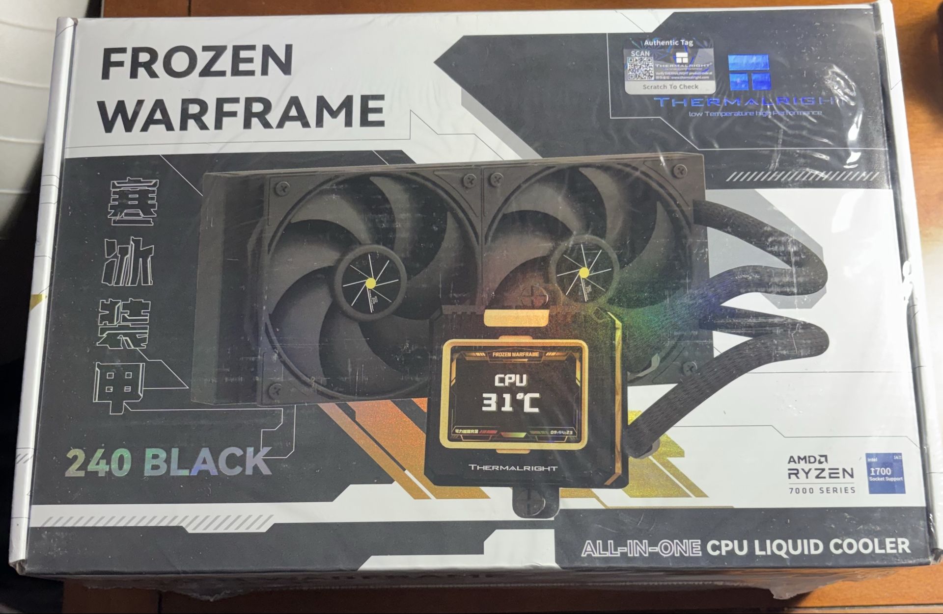 Thermalright Frozen Warframe 240 Black LCD 240mm AIO Liquid Cooler Upgrade your PC with this Brand New Sealed cooling performance and aesthetics with the Thermalright Frozen Warframe 240 Black. This high-performance 240mm AIO liquid cooler features an integrated LCD display, allowing you to monitor system status in real-time while adding a premium, custom look to your gaming rig or workstation. Cash Only Local Pick up only Any questions please don’t hesitate to ask.