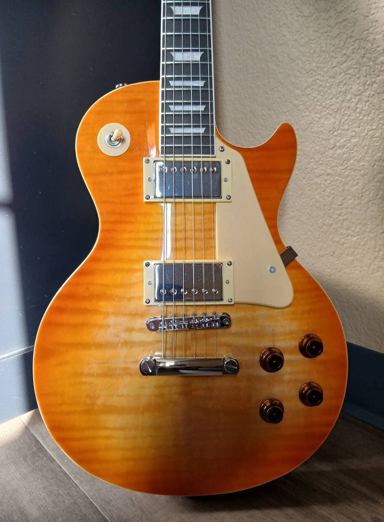 This is a high quality LP copy, mahogany body, maple veneer on top. Its high quality and not a cheap guitar, it will just need to be set up to your liking. It weighs at least 8 Lbs. I'm located in Centennial Colorado. PayPal only. No cash, Vemo, Cash Ap etc..