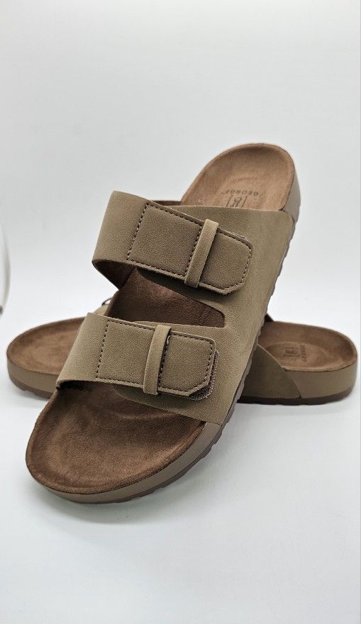This classic two strap buckles and imitation leather sandals are the perfect design for the casual summer style. It features a molded comfort footbed for all day comfort and support. Whether you're grilling, gaming, gardening, or for any vacation outfit, it will look perfect and comfortable. Tough rubbery sole to keep your feet slip free and protected all summer long or any time of the day. Men Size 9 Brand New