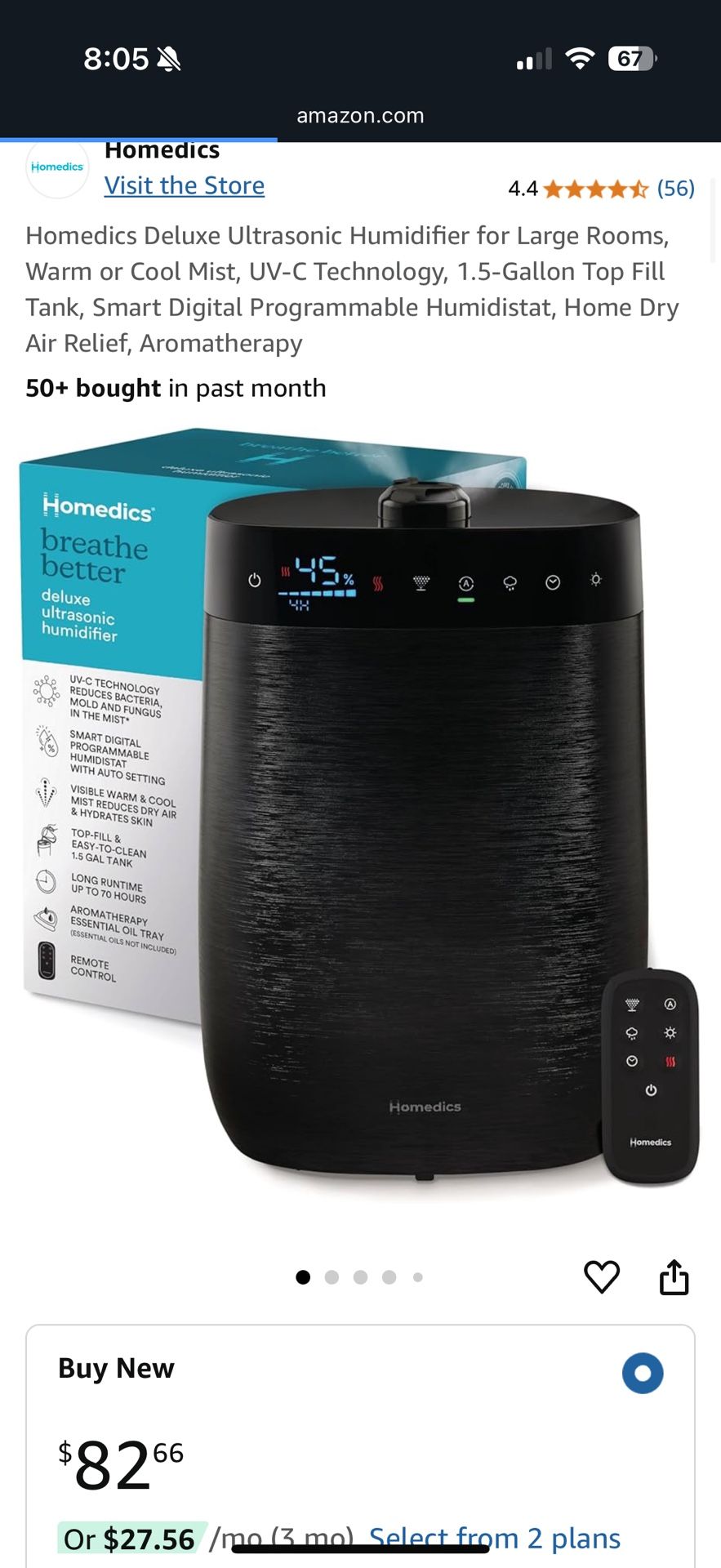 Homedics Deluxe Ultrasonic Humidifier For Large Rooms, Warm Or Cool Mist, UV-C Technology, 1.5-Gallon Top Fill Tank, Smart Digital Programmable Humidistat, Home Dry Air Relief, Aromatherapy