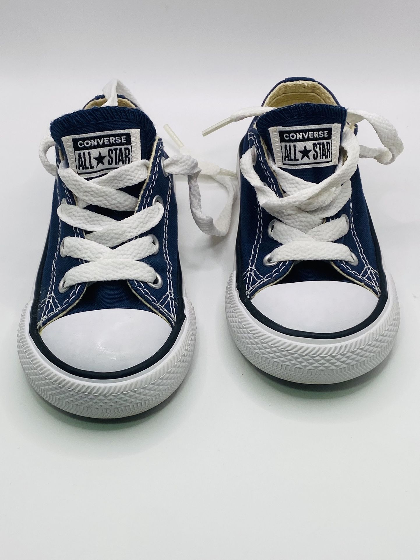 Converse Chuck Taylor All Star Sneakers Baby/Toddler size 6, Navy Blue. Used by only 1 child once for professional pictures & were never walked in. Very clean & in like new condition. Retails $30, asking $20. Local pickup. Cash only. If it’s listed then it’s available. Online Details: SHOE FEATURES- Canvas upper promises durability and breathability. Reinforced toe provides extra protection. Padded footbed cushions every step. Flexible rubber outsole ensures reliable traction and movement. SHOE CONSTRUCTION- Canvas upper & lining Rubber outsole SHOE DETAILS- Round toe Lace-up closure Padded footbed